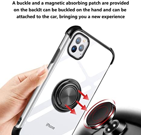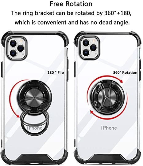 Hoesje Geschikt voor iPhone 11 Pro Max hoesje silicone met ringhouder Back Cover case - Transparant/Zwart