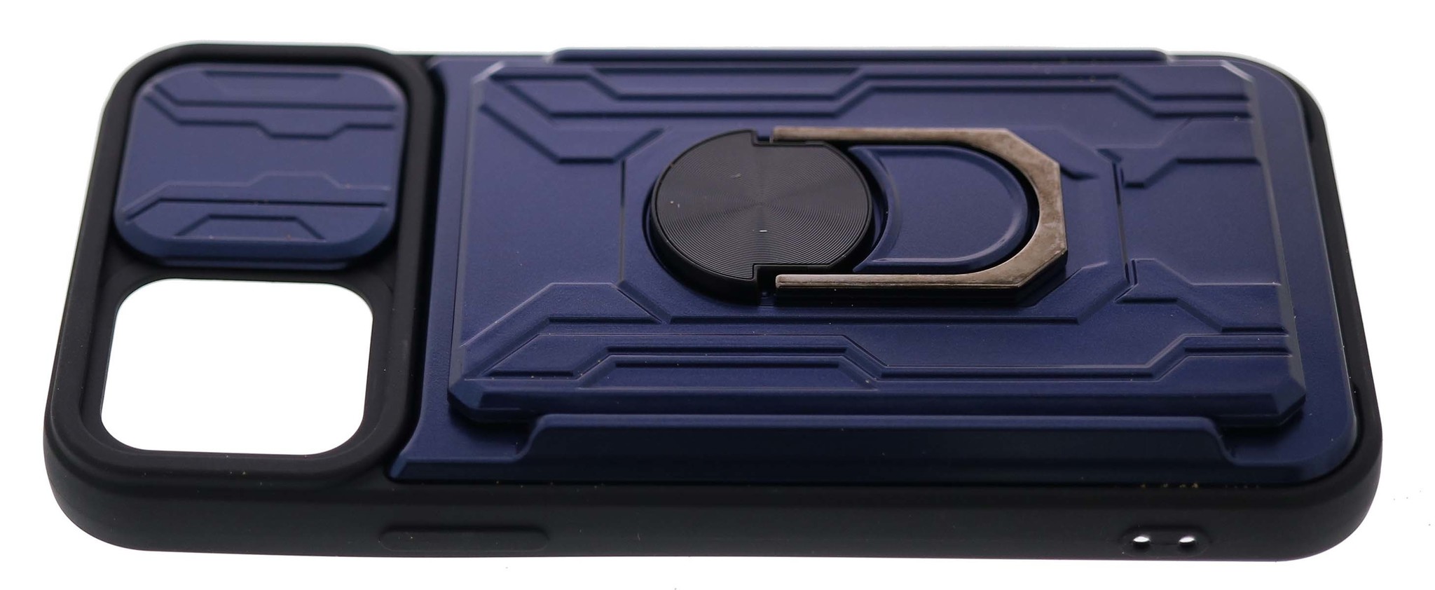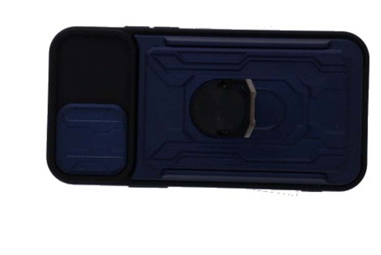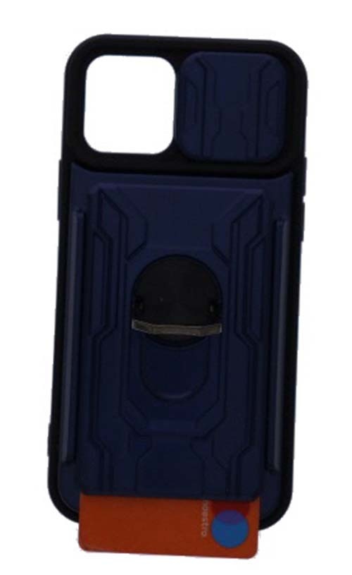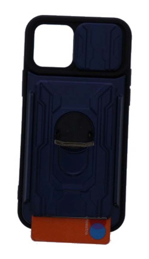 Geschikt voor iPhone 12/12 Pro hoesje met pashouder - camera bescherming cover en ring houder – Blauw – oTronica