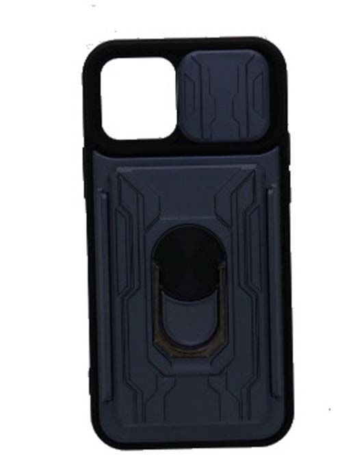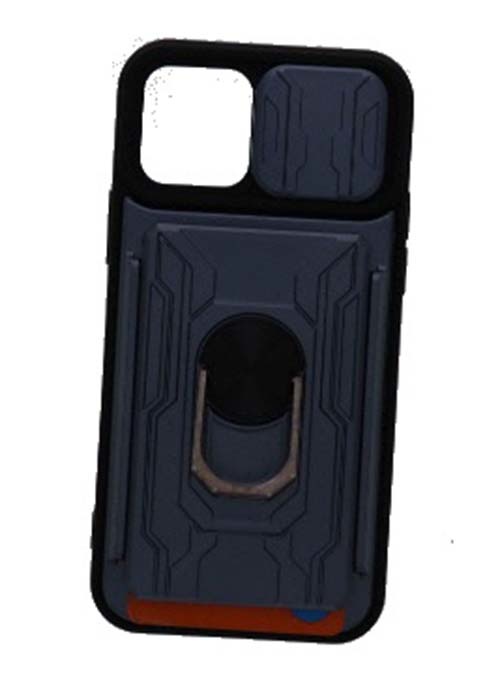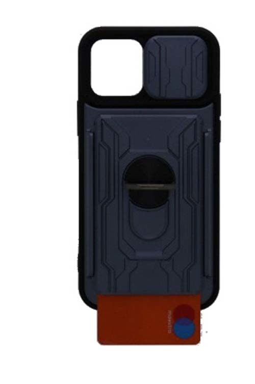Geschikt voor iPhone 12/12 Pro hoesje met pashouder - camera bescherming cover en ring houder – Grijs – oTronica