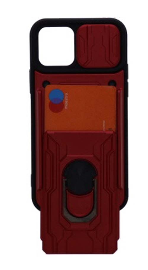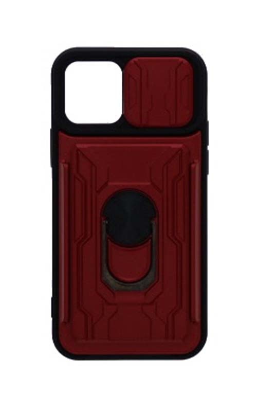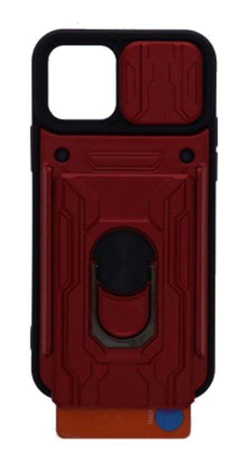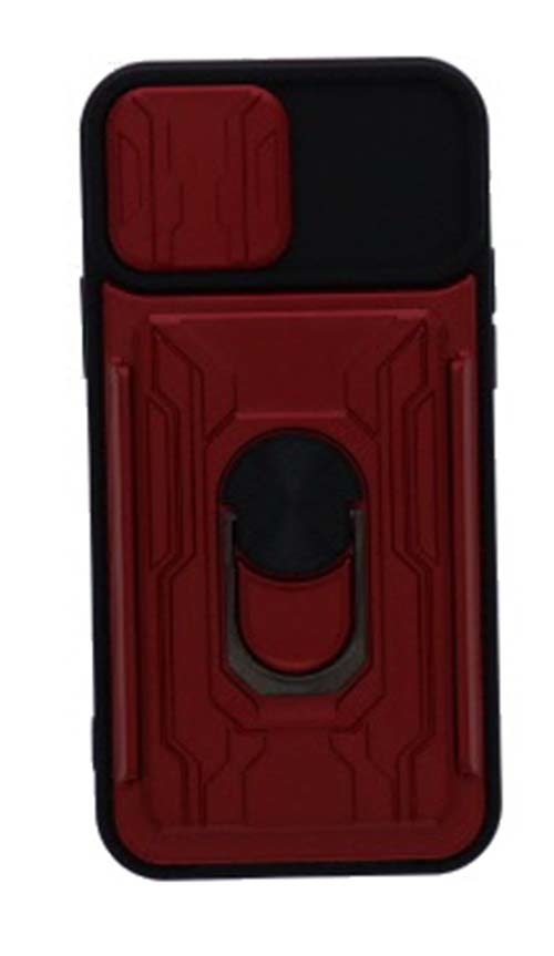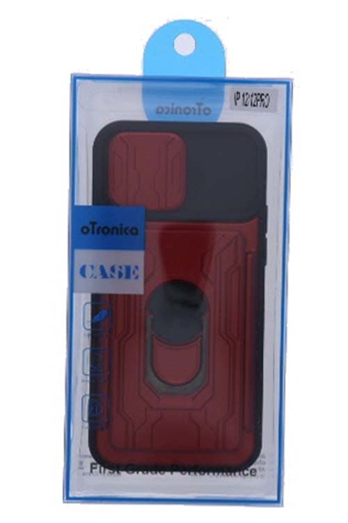 Geschikt voor iPhone 12/12 Pro hoesje met pashouder - camera bescherming cover en ring houder – Rood – oTronica