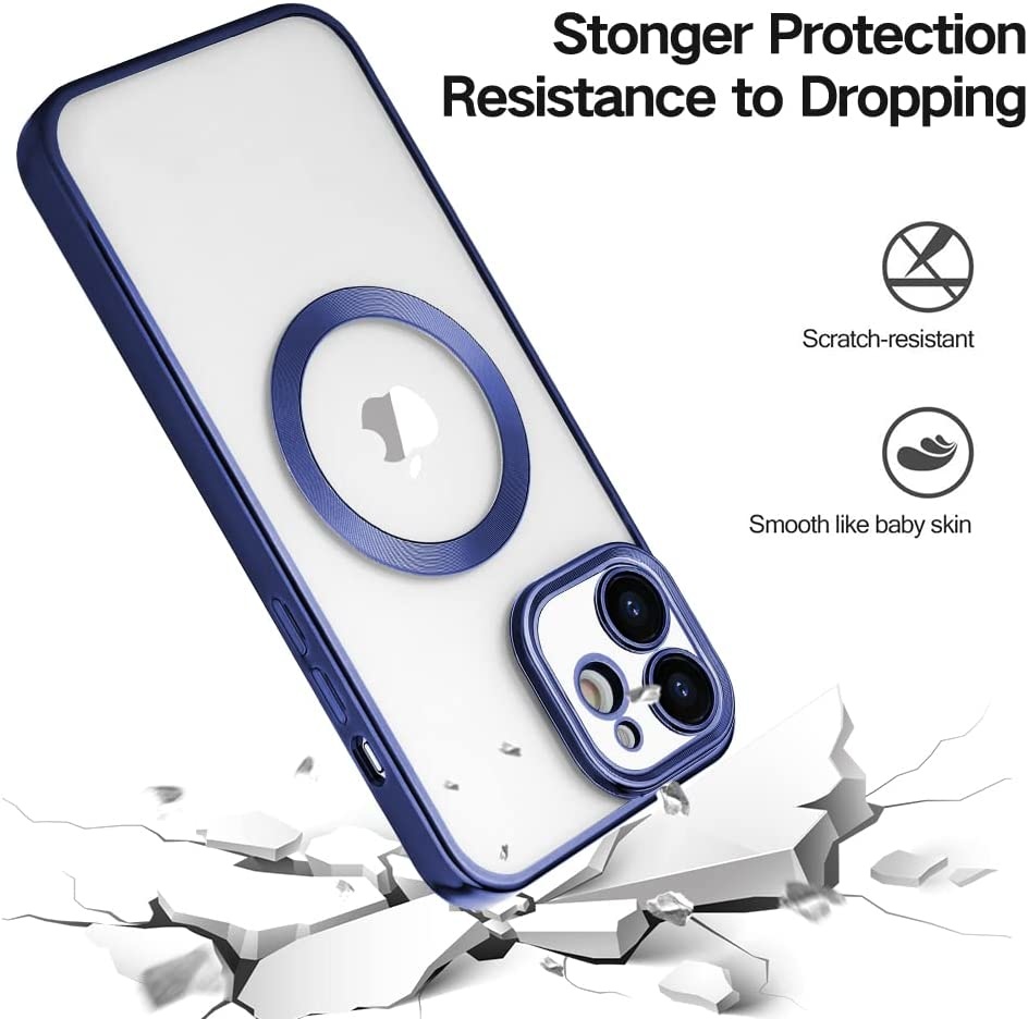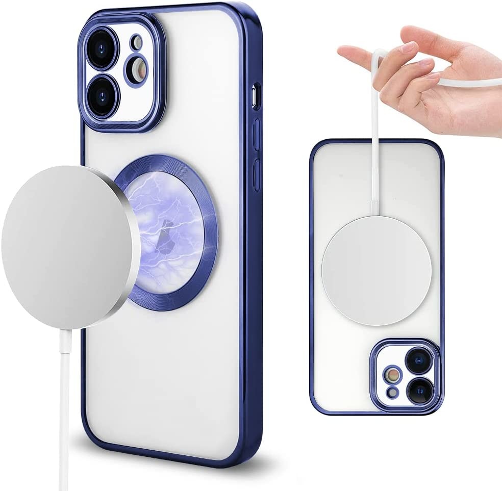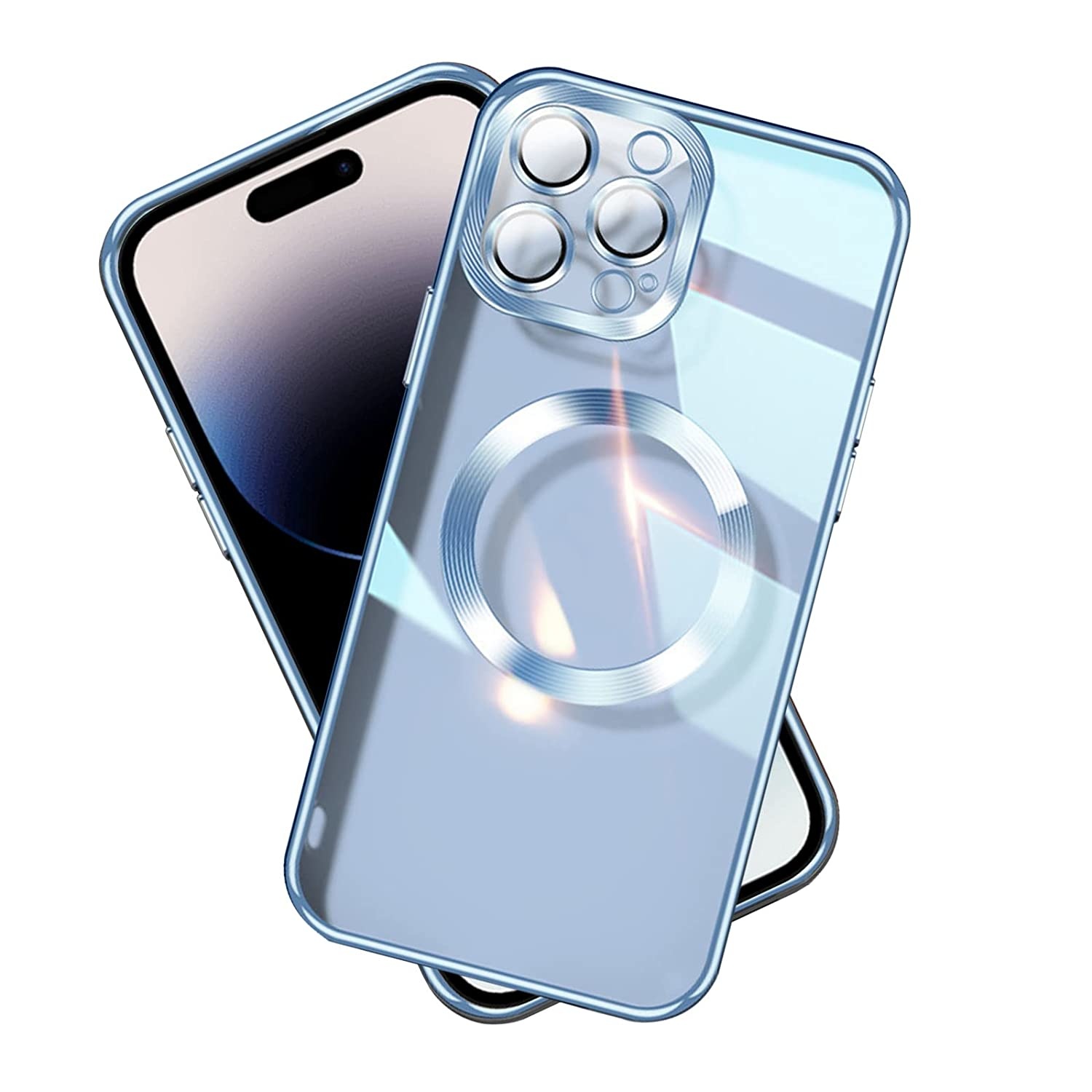Hoesje Geschikt voor iPhone 12 Pro Magsafe hoes backcover – Lens beschermer – Transparant / Blauw
