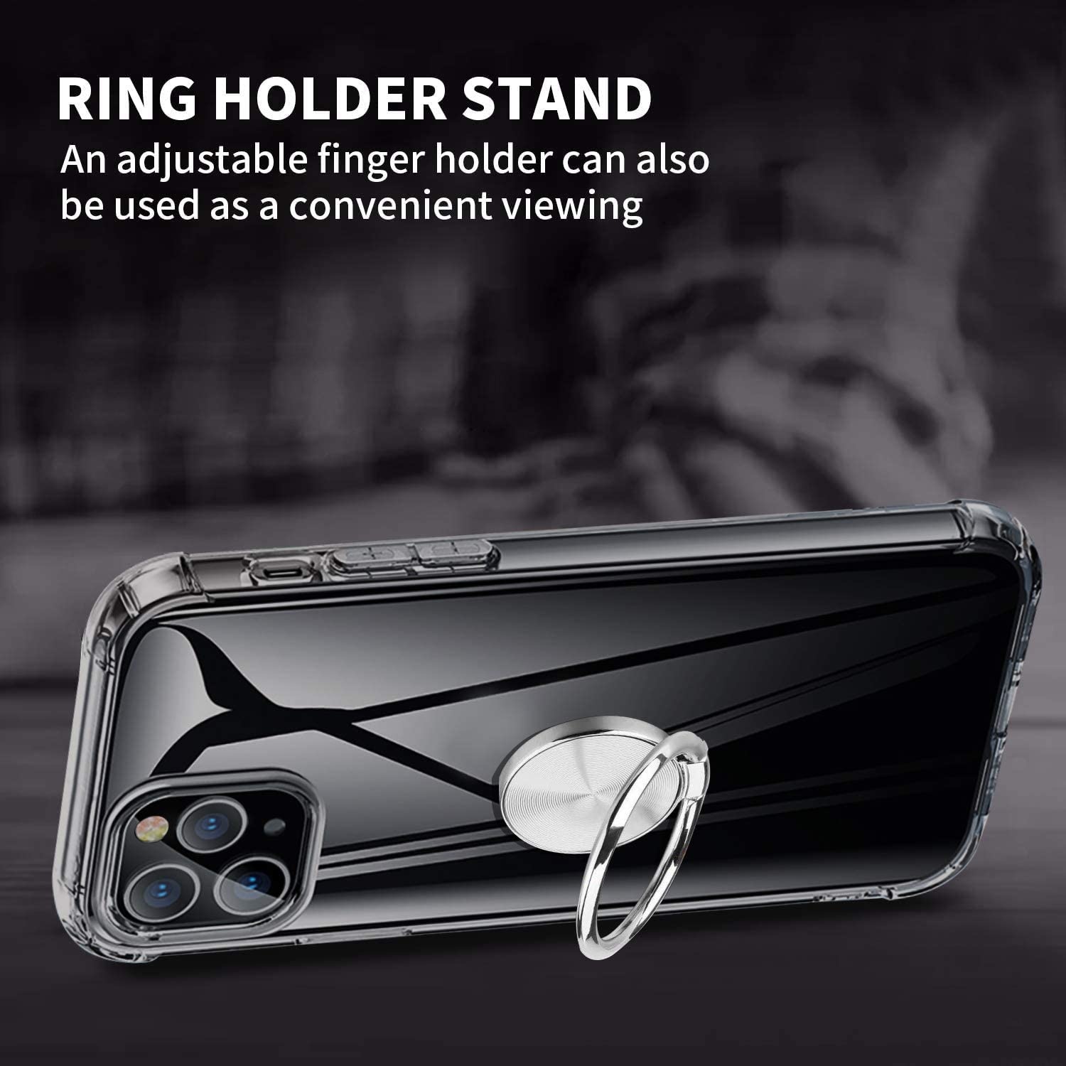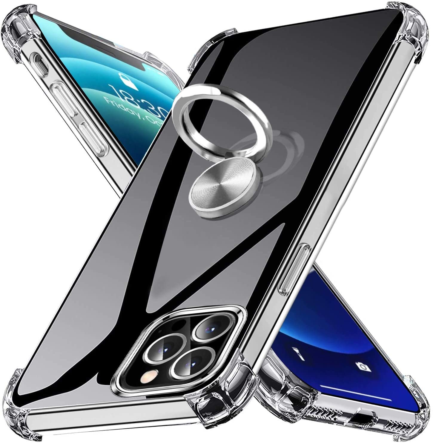 Hoesje Geschikt voor iPhone 12 Pro Max hoesje - Backcover met Ringhouder - Verstevigde hoeken - Transparant/Zwart