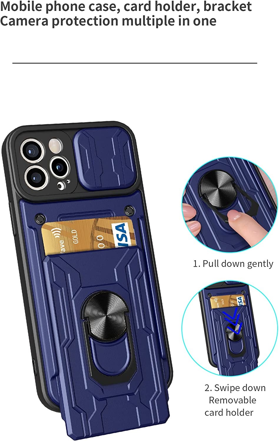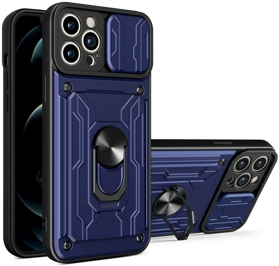 Geschikt voor iPhone 12 Pro Max hoesje met pashouder - camera bescherming cover en ring houder – Blauw – oTronica