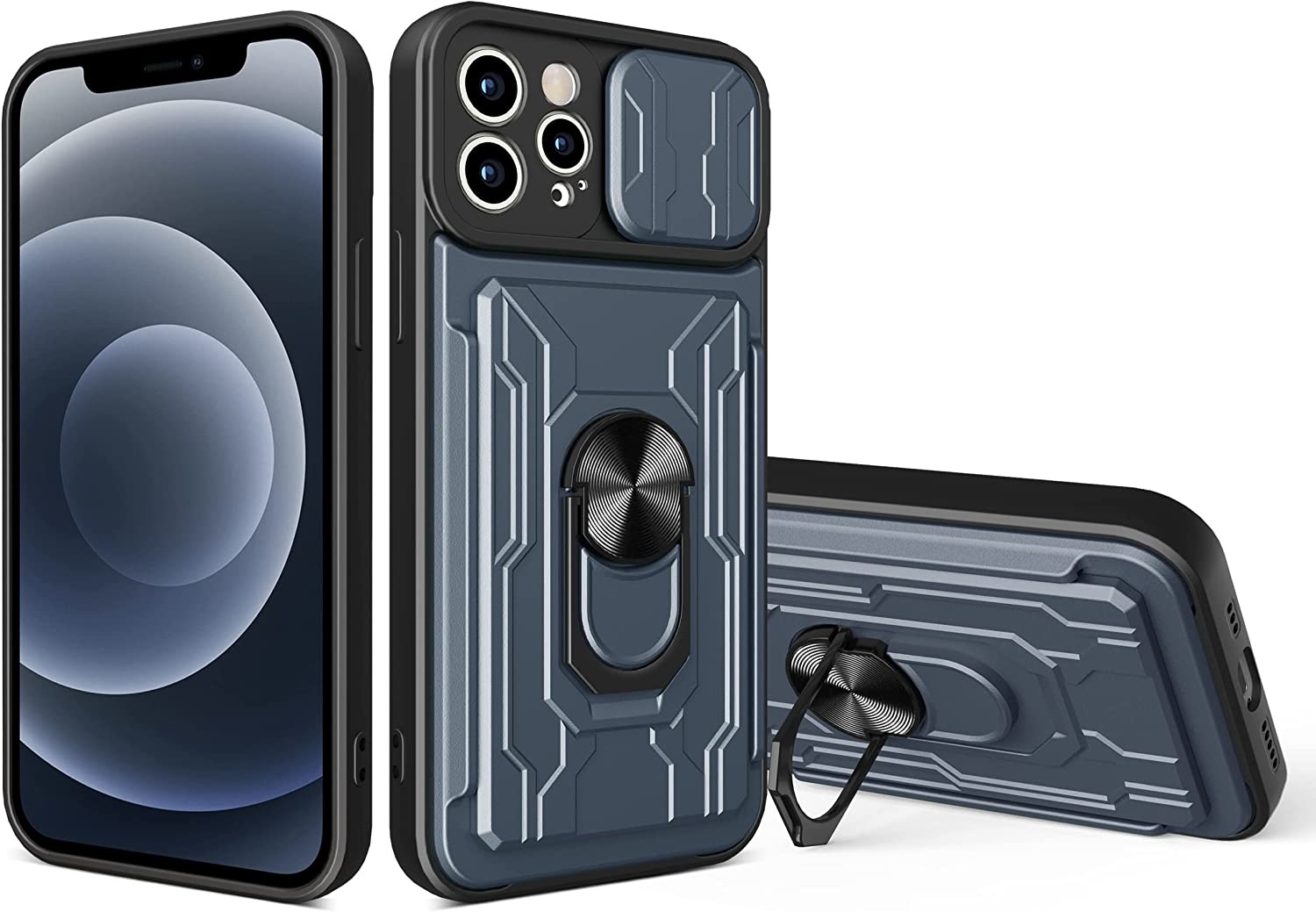 Geschikt voor iPhone12 Pro Max hoesje met pashouder - camera bescherming cover en ring houder – Grijs – oTronica