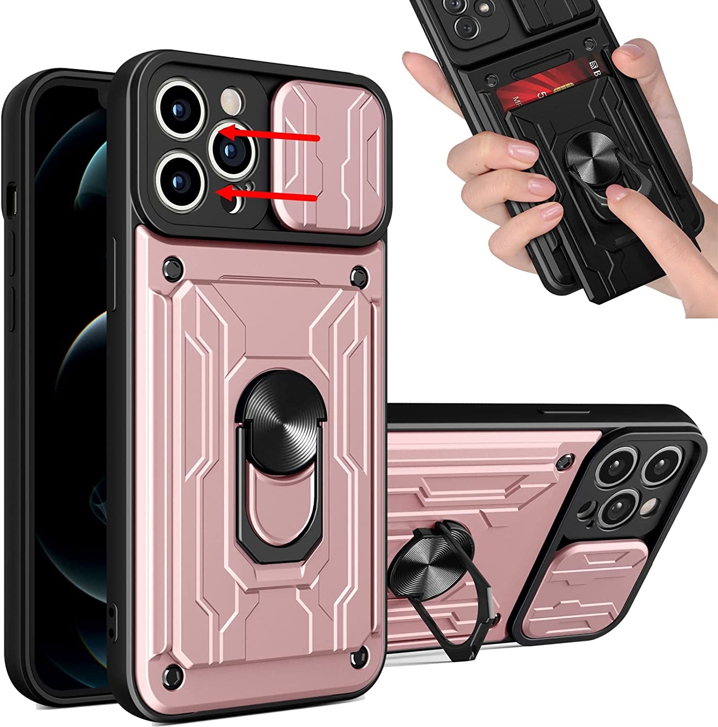 Geschikt voor iPhone 12 Pro Max hoesje met pashouder - camera bescherming cover en ring houder – Rosegoud – oTronica