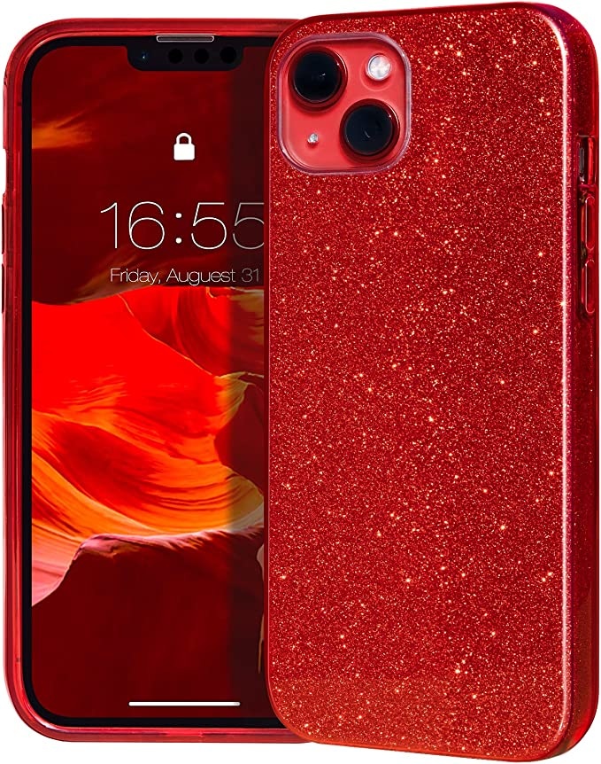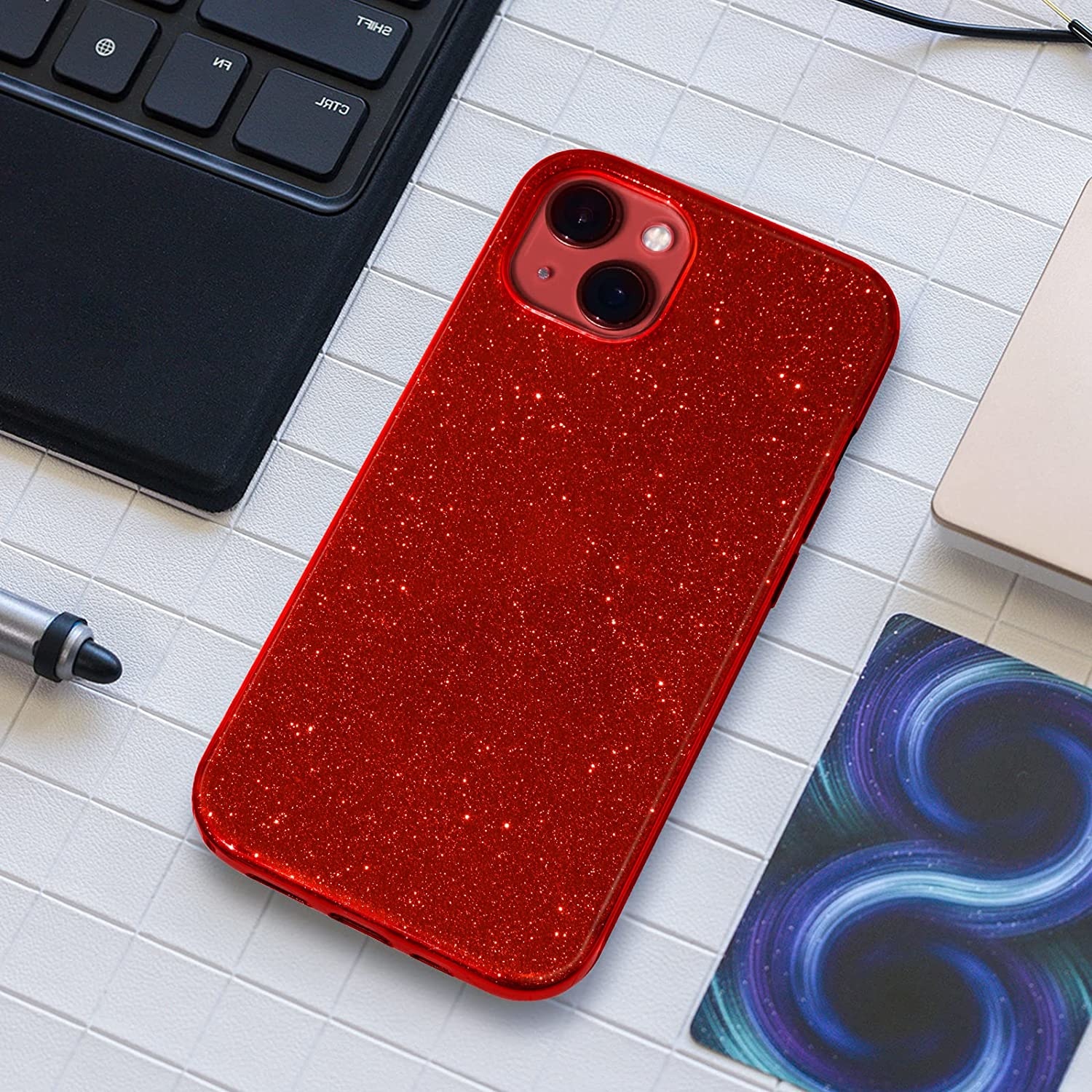 Bescherm je iPhone 13 met deze Luxe Glitter – backcover hoesje -Rood- hard case
