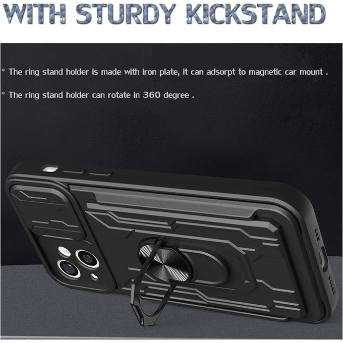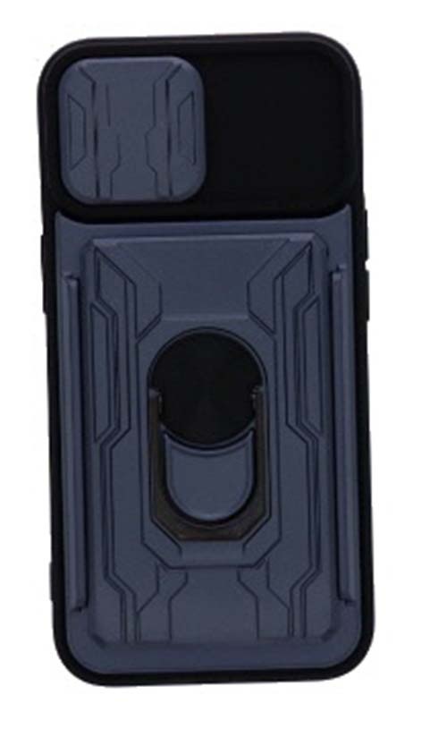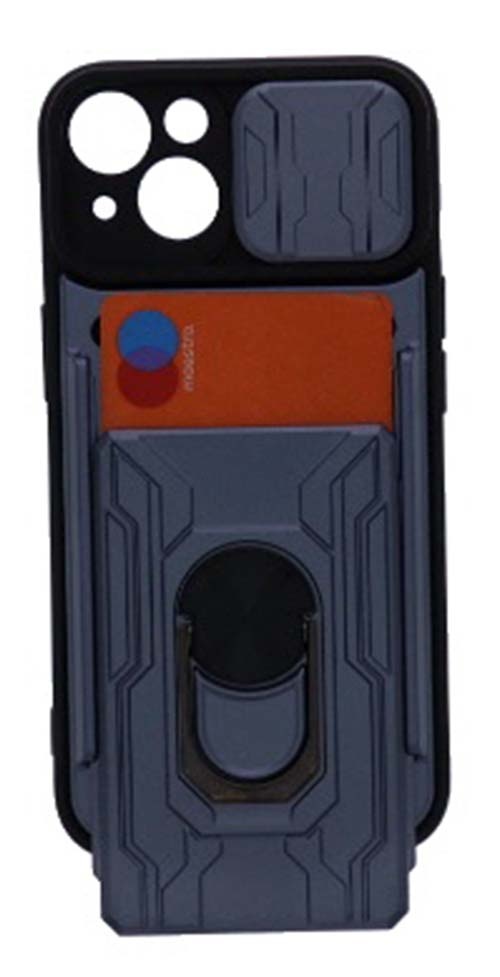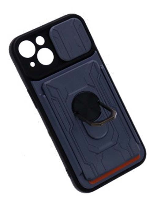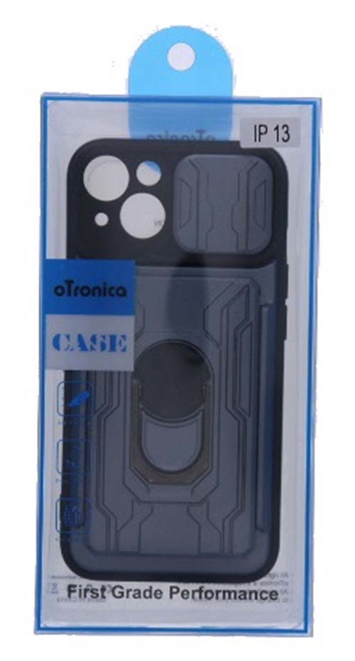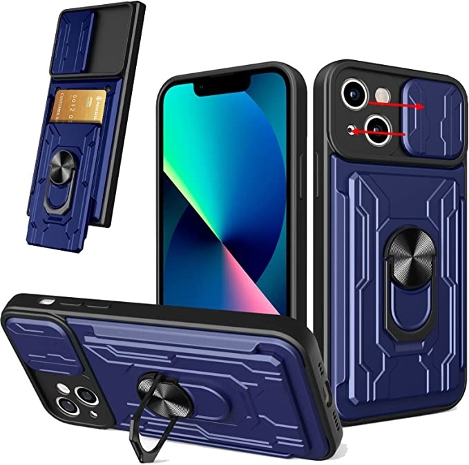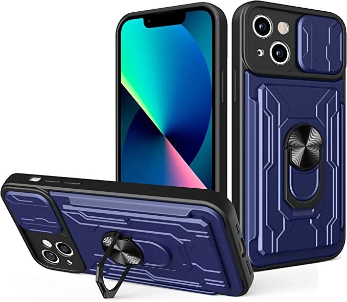 Geschikt voor iPhone 13 hoesje met pashouder - camera bescherming cover en ring houder – Blauw – oTronica