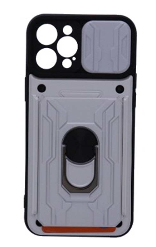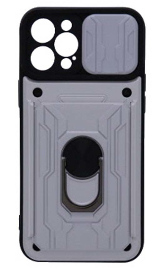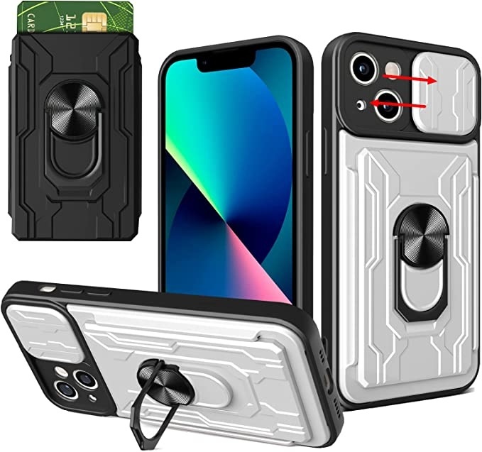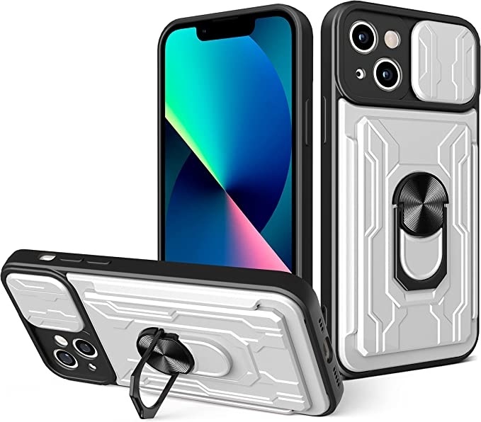 Geschikt voor iPhone 13 hoesje met pashouder - camera bescherming cover en ring houder – Zilver – oTronica