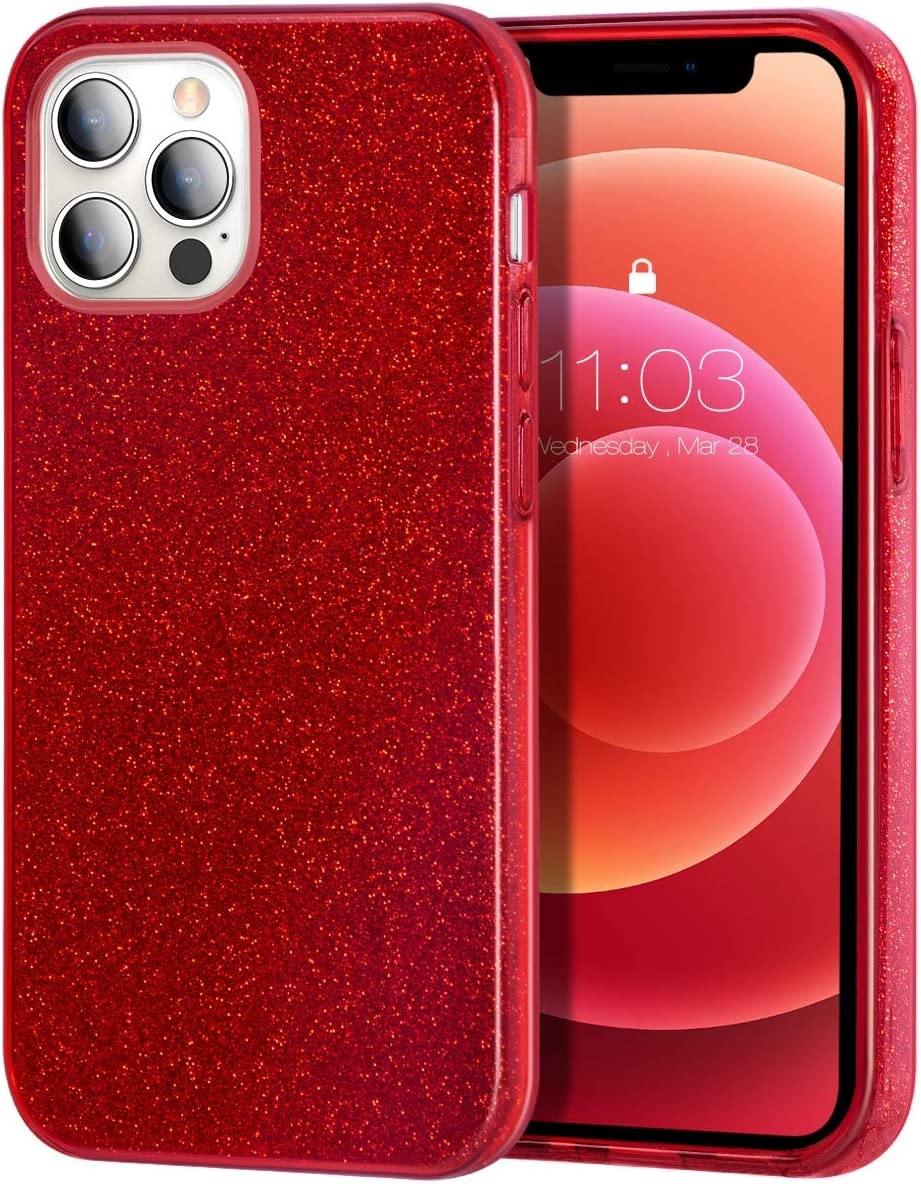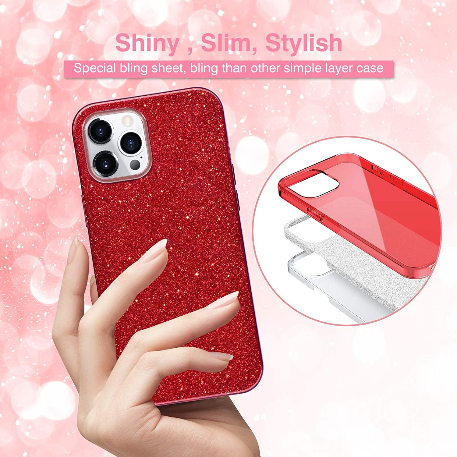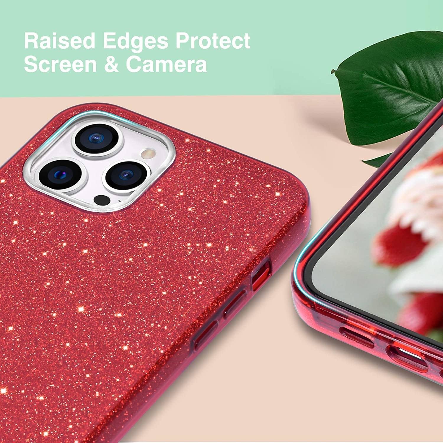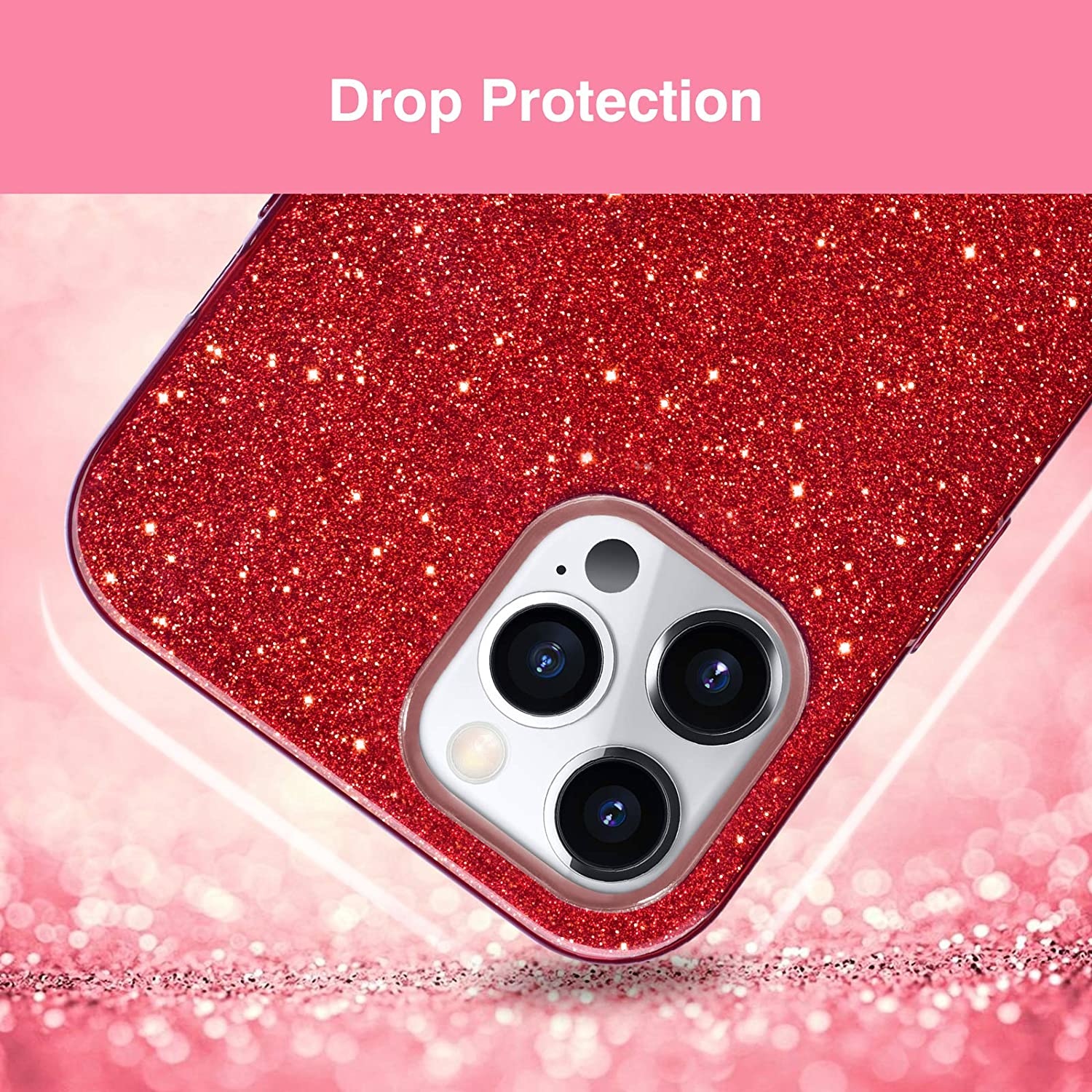 Bescherm je iPhone 13 Pro met deze Luxe Glitter – backcover hoesje -Rood- hard case