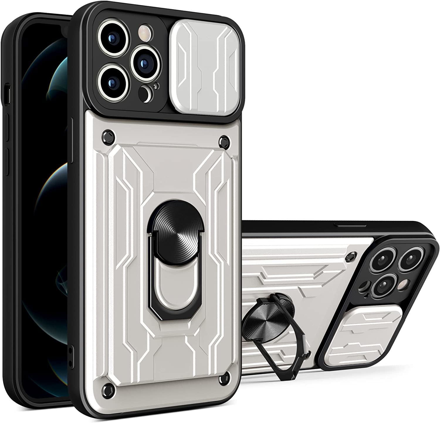 Geschikt voor iPhone 13 Pro hoesje met pashouder - camera bescherming cover en ring houder – Blauw – oTronica