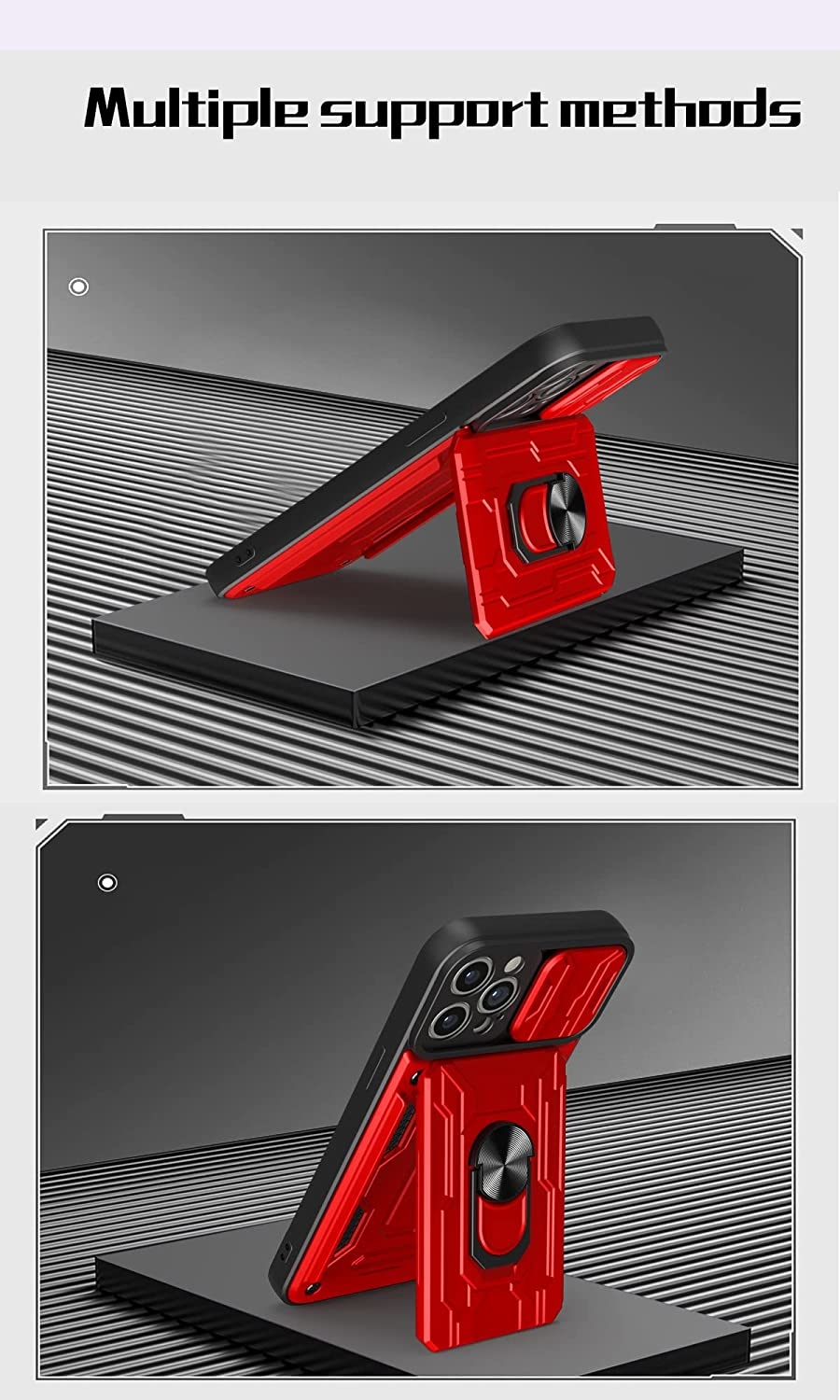 Dit unieke iPhone 13 Pro Max hoesje met kickstand camera lenz dekking en kaarthouder is de nieuwste desgin in de markt, het metaalgeval past uw telefoon met hoge precisieknipsels en de naald kijkt en voelt groot in degenen hand.