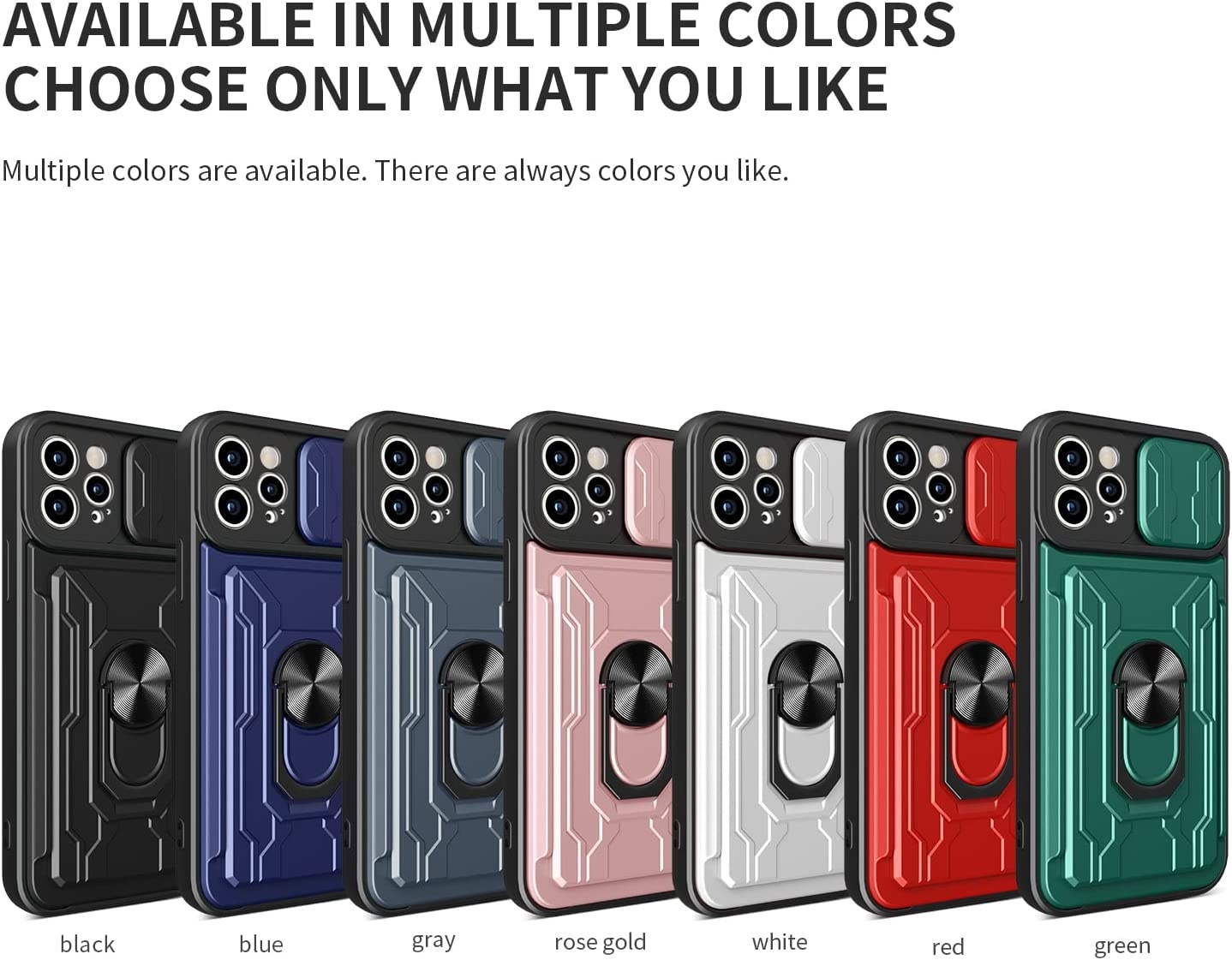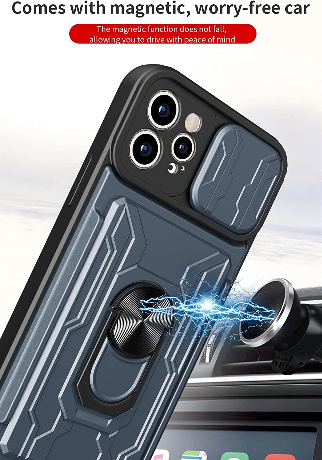 Geschikt voor iPhone 13 Pro Max hoesje met pashouder - camera bescherming cover en ring houder – Grijs – oTronica