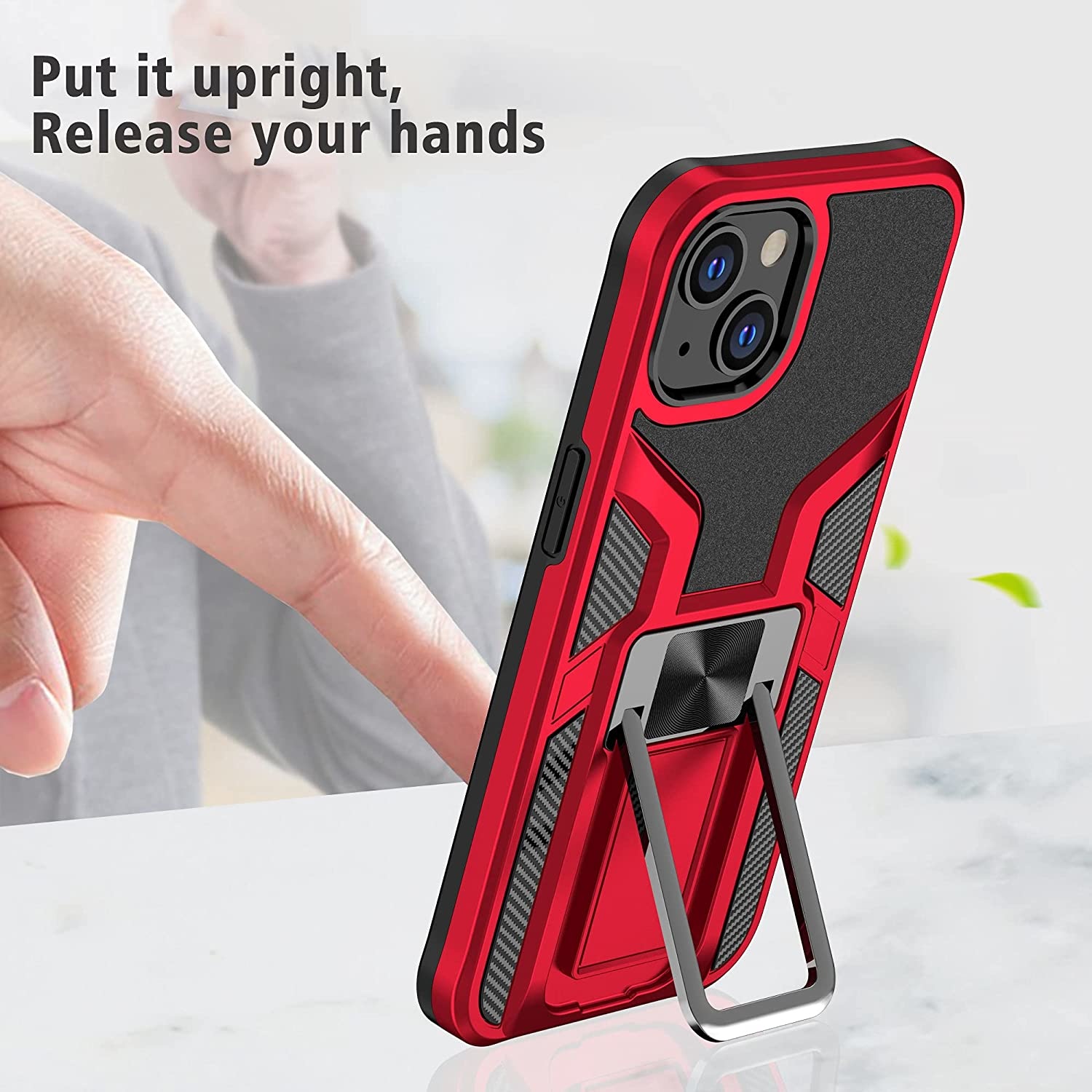 Hoesje Geschikt voor iPhone 13 Pro Max – Schokbestendig Ultra Slim Soft TPU Cover met kicktand Ringhouder – Rood