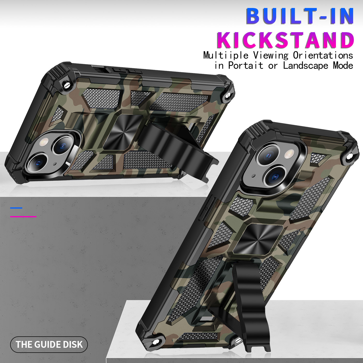 Geschikt voor iPhone 13 Pro Max hoesje rugged extreme backcover met ring houder Camouflage – Groen
