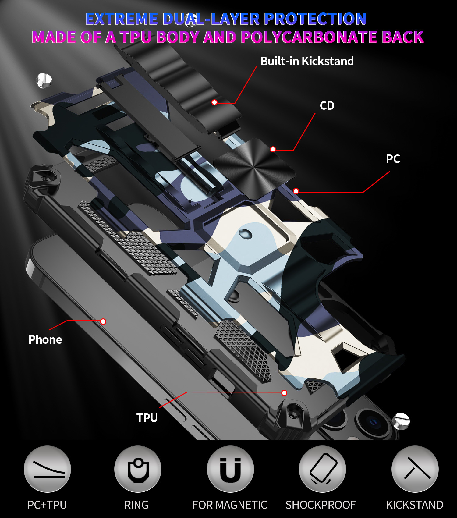 iPhone 13 hoesje backcover armor case met ring houder Camouflage marineblauw