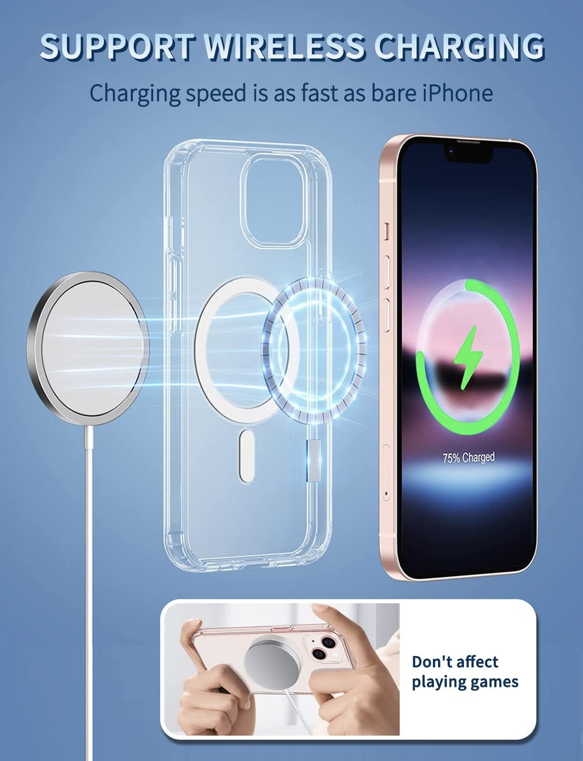 Vanwege de ingebouwde magneten die perfect matchen met iPhone 14 Plus is koppelen heel makkelijk. Dankzij de magneten zit je iPhone direct goed op zijn plek, zodat je ’m snel en eenvoudig kunt opladen. Je kunt het hoesje gewoon om je iPhone 14 Max laten zitten en je Magnetisch-oplader eraan vastklikken of je iPhone op je Qi-oplader (draadloos) plaatsen.