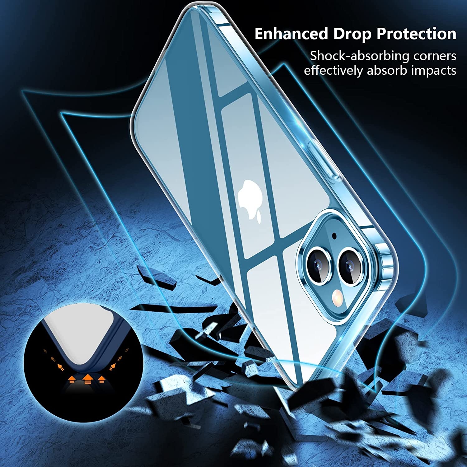 Speciaal gemaakt voor de iPhone 14 Plus 6.7 biedt deze Shock Proof hoesje met TPU soft frame de juiste bescherming tegen vallen, stoten, vuil en krassen en andere beschadigingen van uw smartphone. Transparant Shock Proof hoesje met TPU rand, voorzien van de benodigde uitsparingen voor knoppen camera en toegangspoorten. Door het dunne ontwerp van het hoesje wordt er weinig extra grootte toegevoegd aan u smartphone.