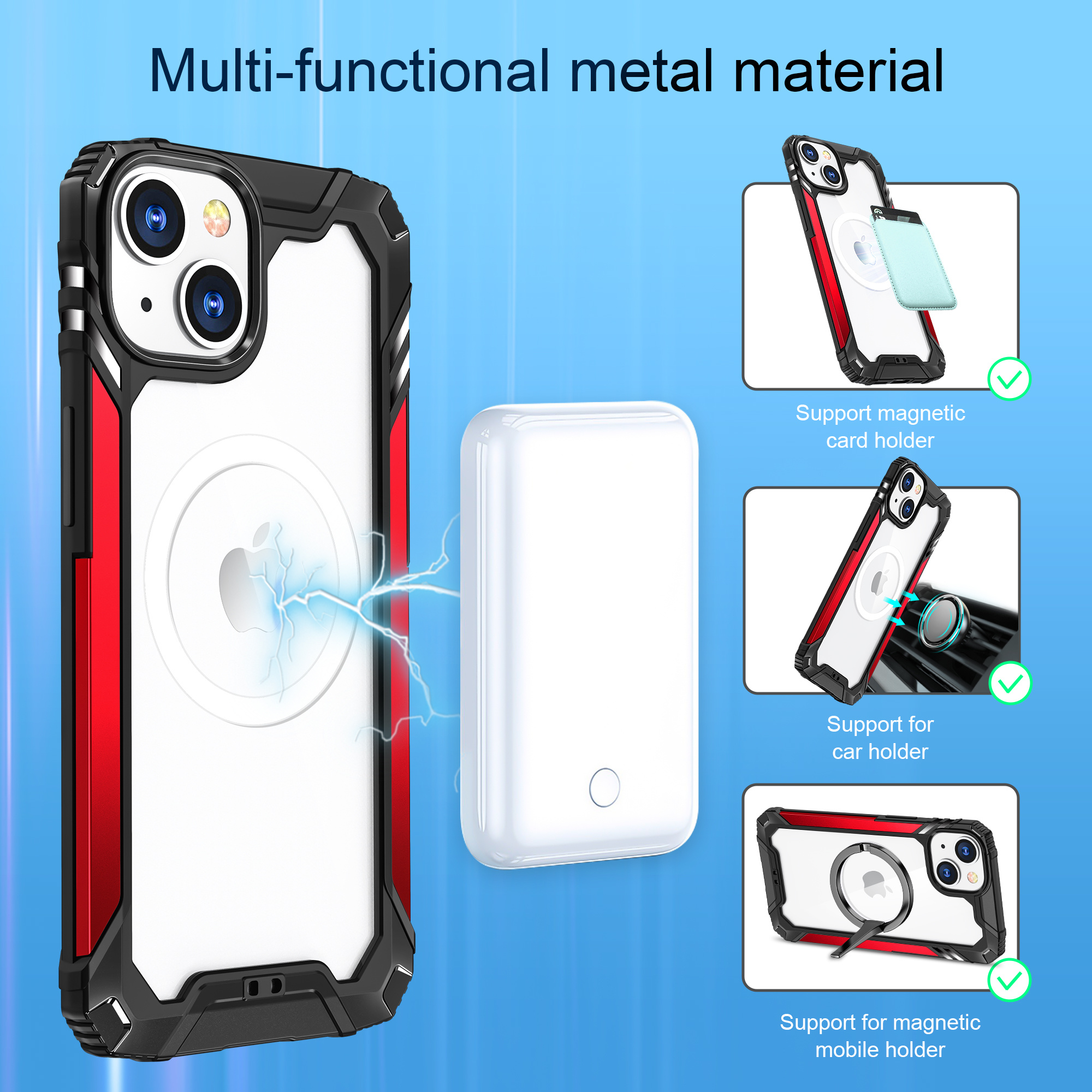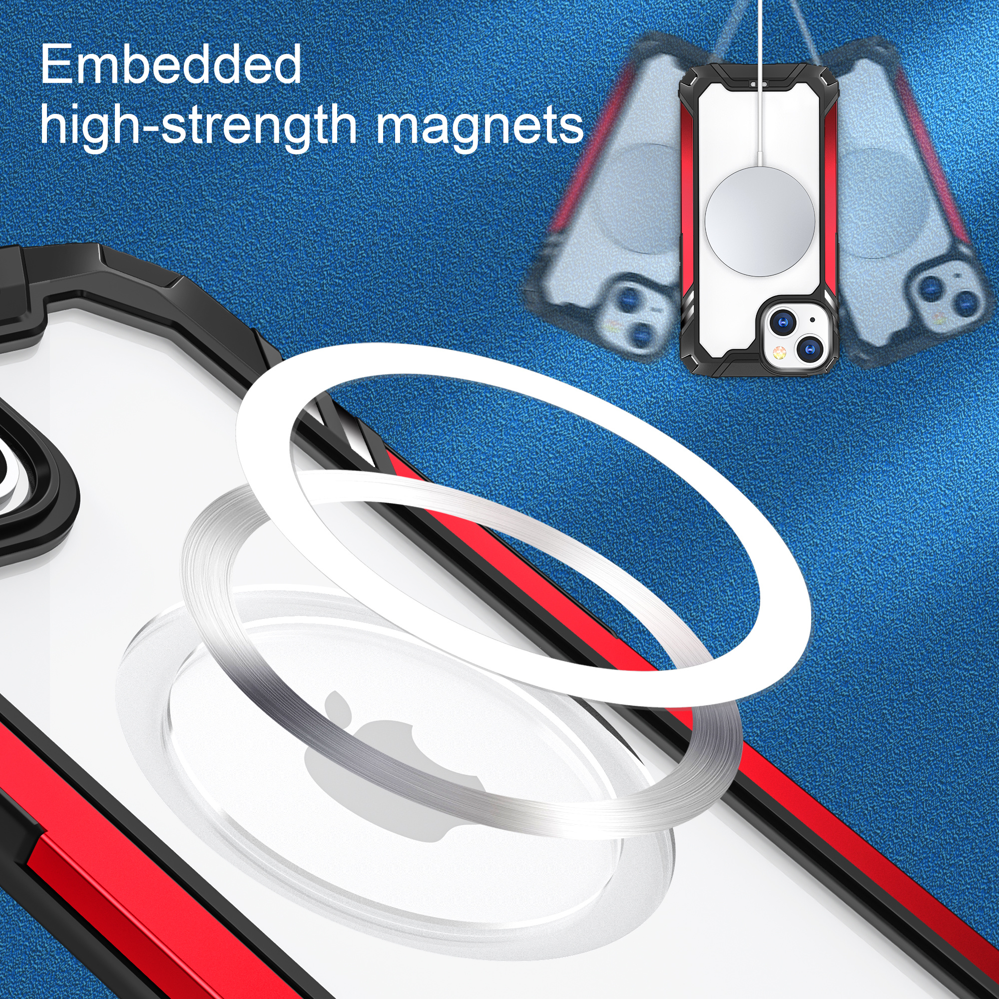 Hoesje Geschikt voor iPhone 14 Pro Max Magsafe hoes Ring Shockproof bumper case – Rood