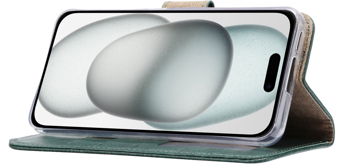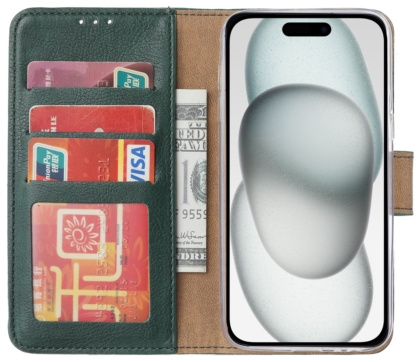 Hoesje Geschikt voor iPhone 15 – portemonnee bookcase met pasjeshouder – Groen