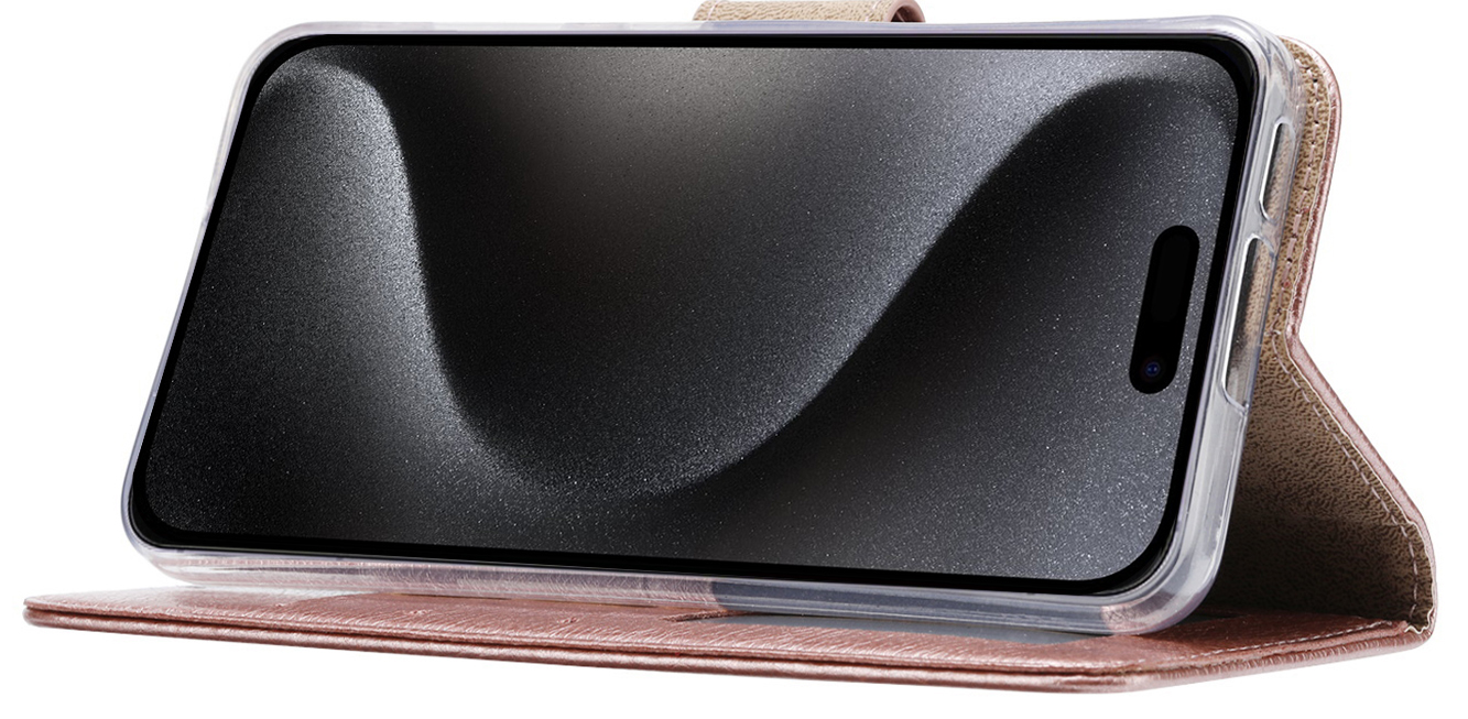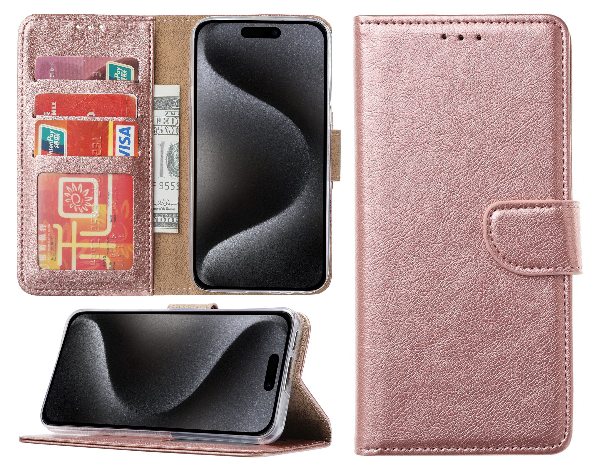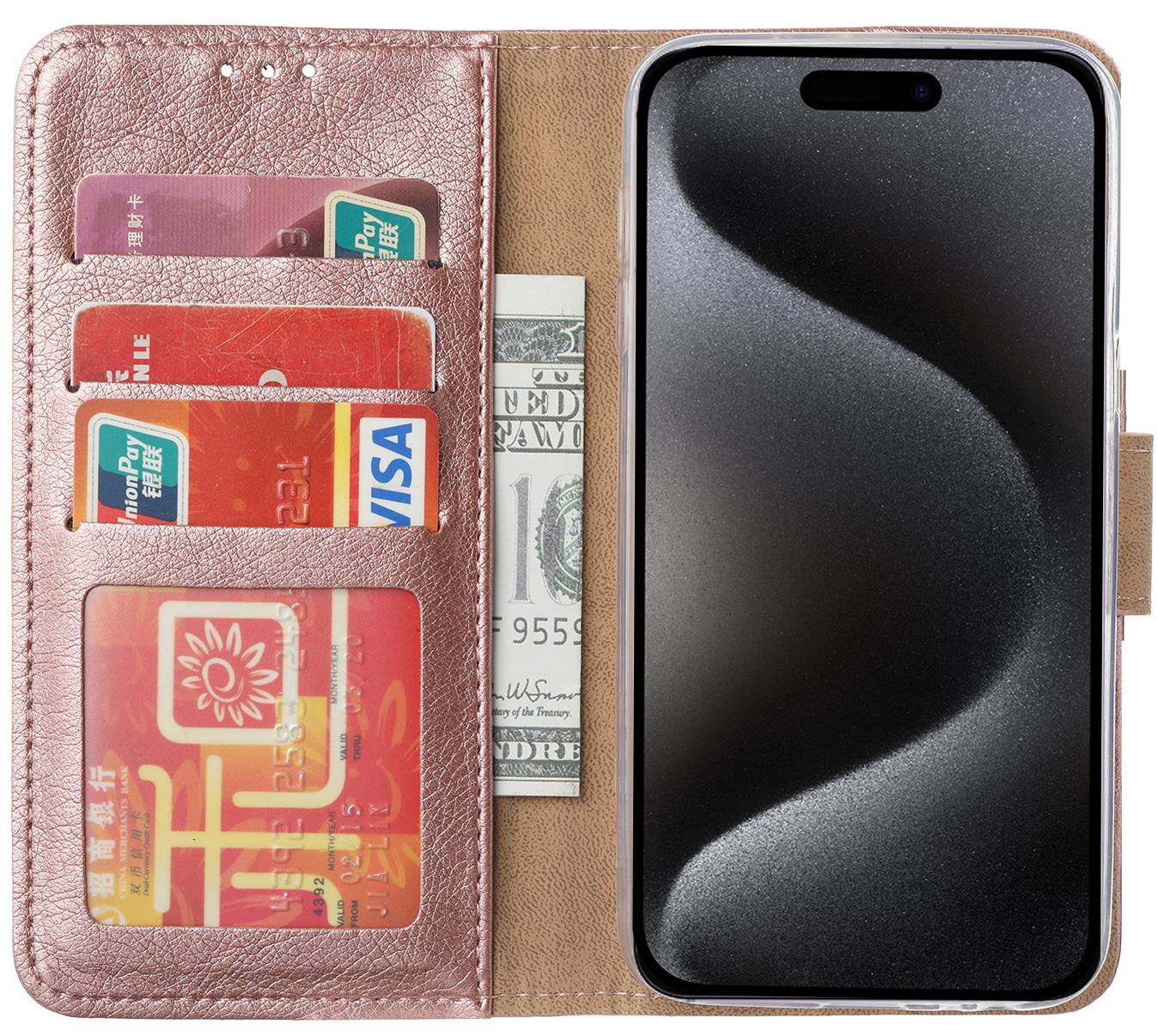 Hoesje Geschikt voor iPhone 15 Pro – portemonnee bookcase met pasjeshouder – Rosegoud