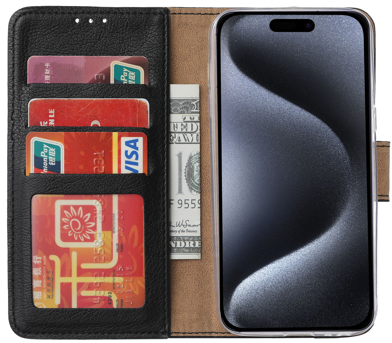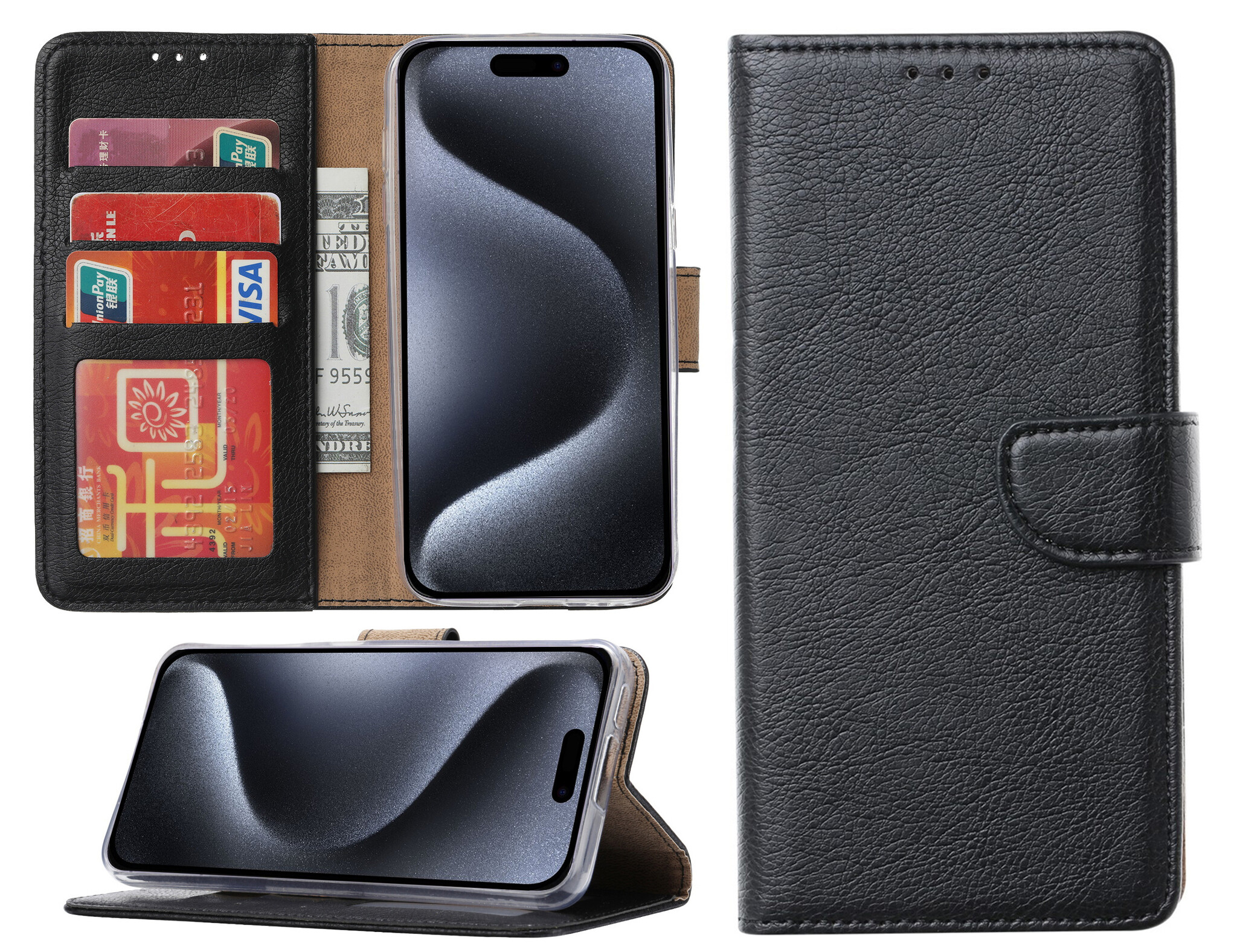 Hoesje Geschikt voor iPhone 15 Pro Max – portemonnee bookcase met pasjeshouder – Zwart