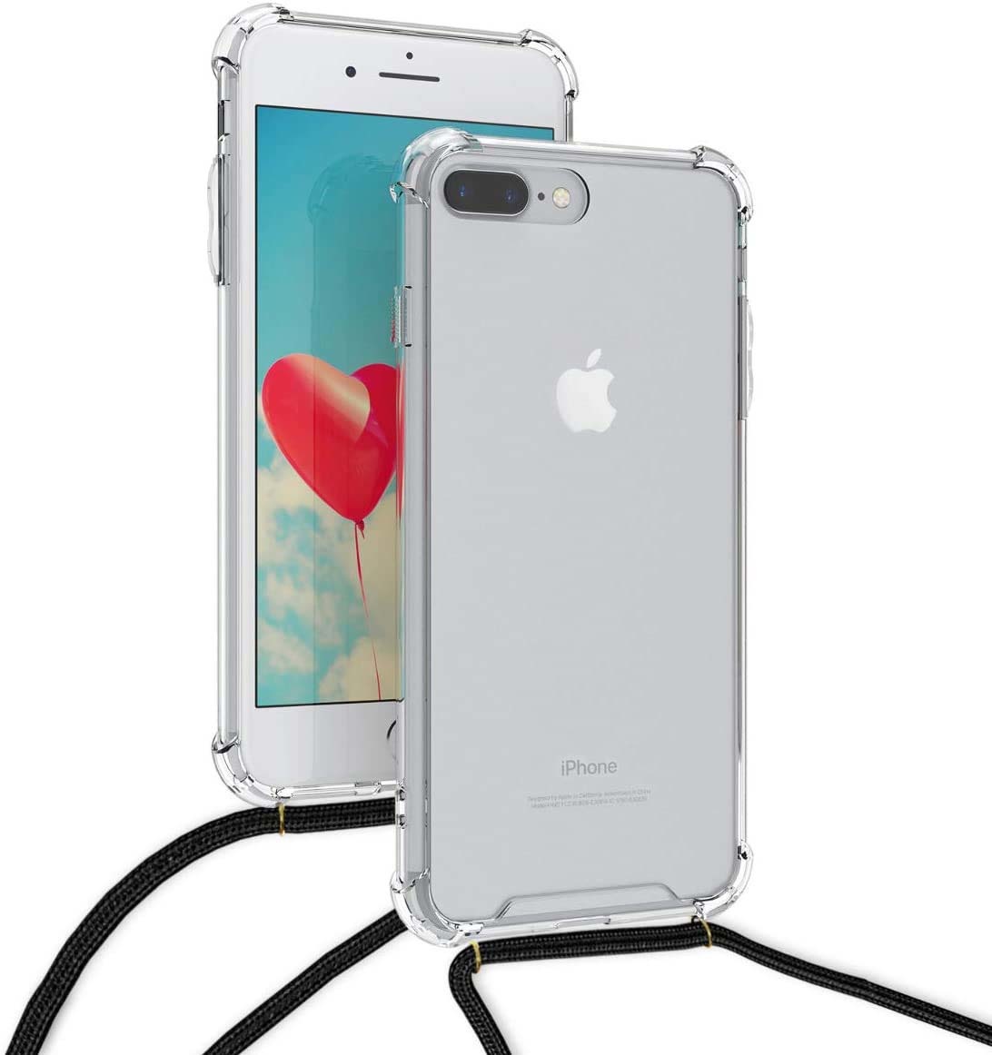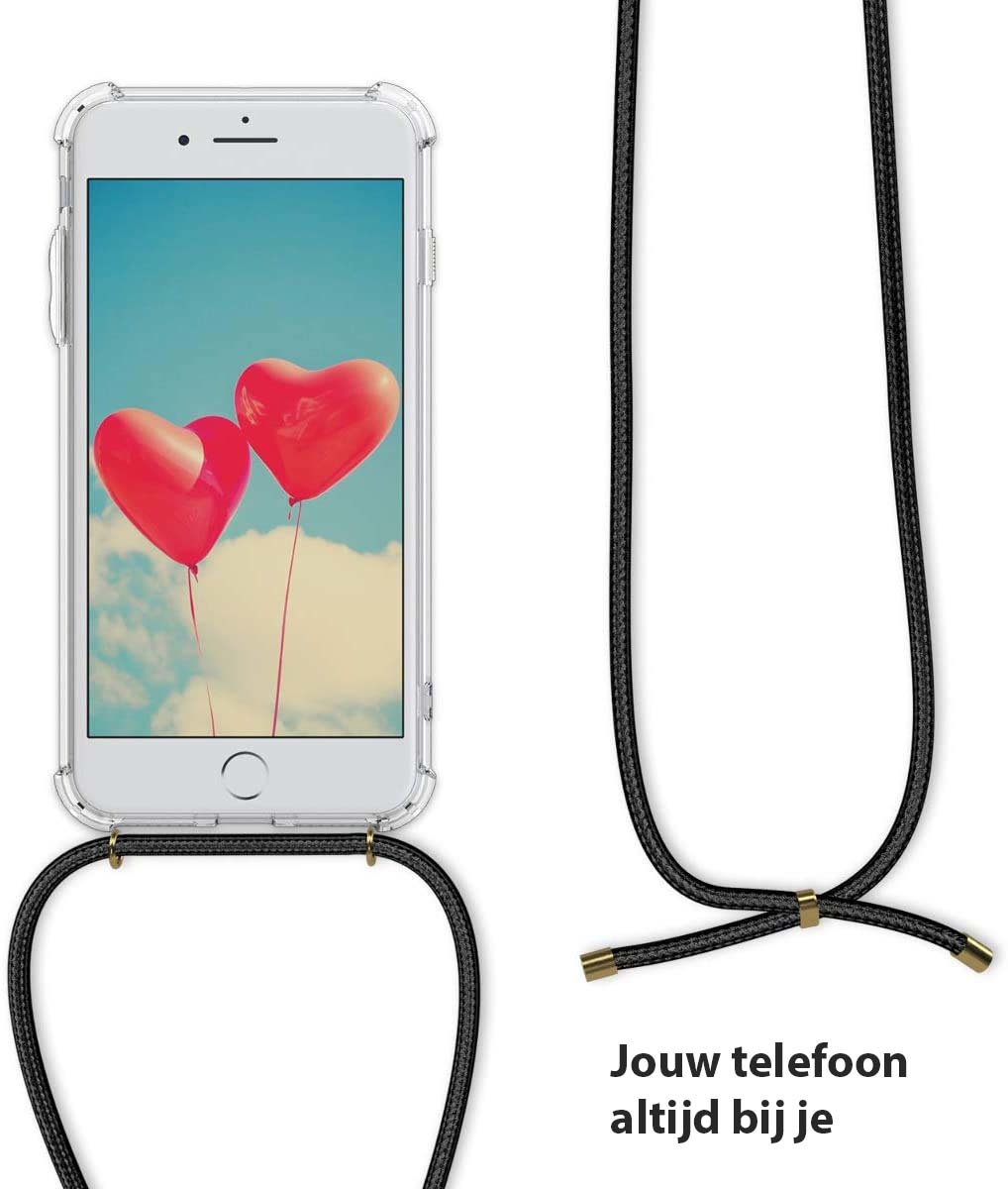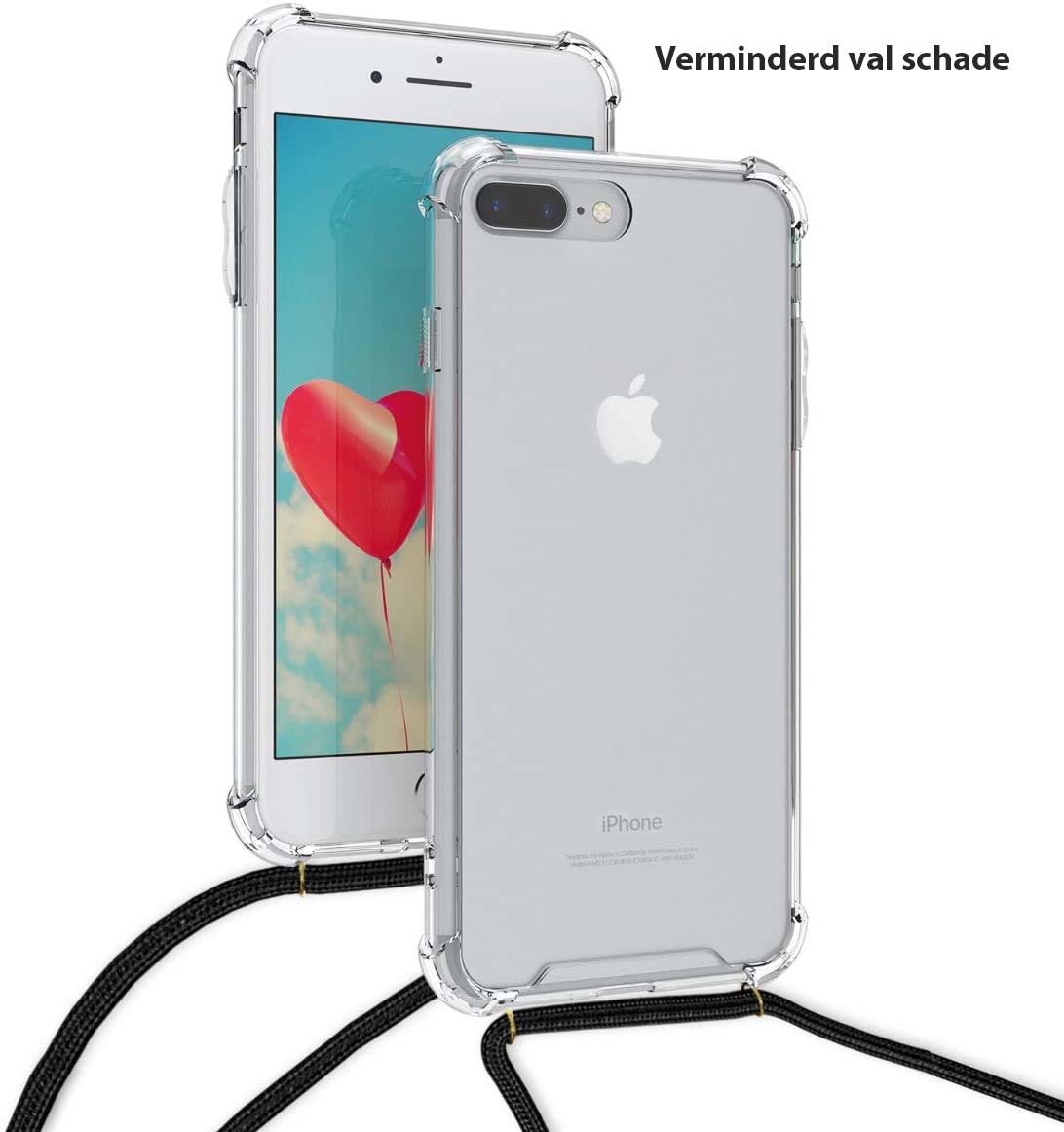 Geschikt voor iPhone 7 plus hoesje met koord transparant Siliconen Zwart – Geschikt voor iPhone 8 plus backcover - Geschikt voor iPhone 7 plus case – oTronica koord hoesje Geschikt voor iPhone