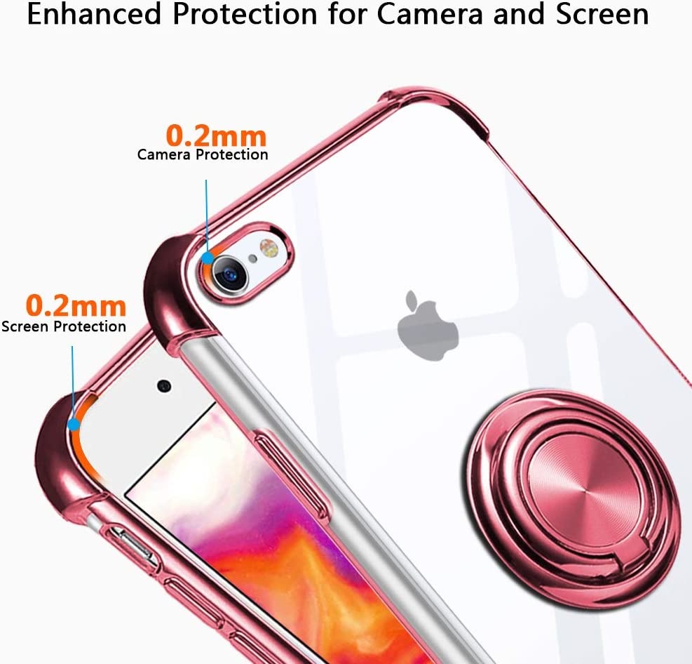 Hoesje Geschikt voor iPhone 7 hoesje silicone met ringhouder Back Cover case - Transparant/Rosegoud
