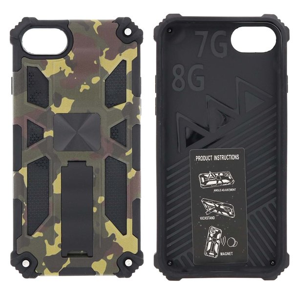 Hoesje Geschikt voor iPhone 8 Hoesje - Rugged Extreme Backcover Army Camouflage met Kickstand - Groen