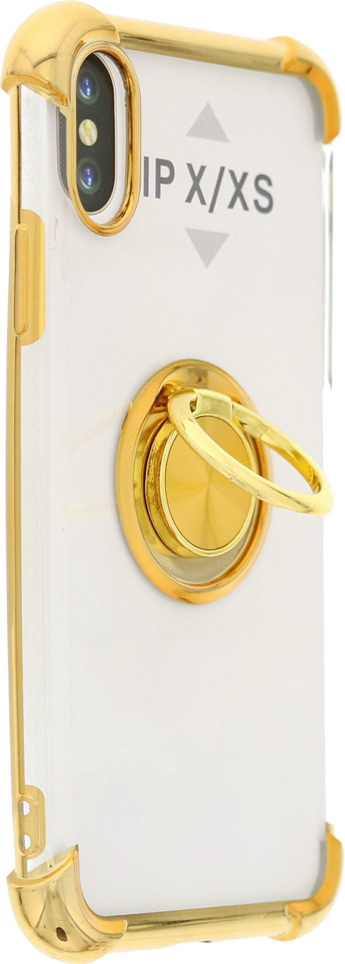Hoesje Geschikt voor iPhone XS hoesje silicone met ringhouder Back Cover case - Transparant/Goud