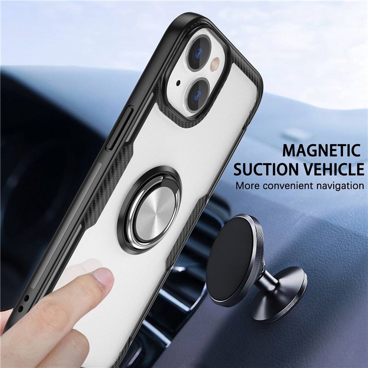 Hoesje Geschikt voor iPhone 14 Plus Hoesje backcover met Magnetische ring houder ring – Zwart