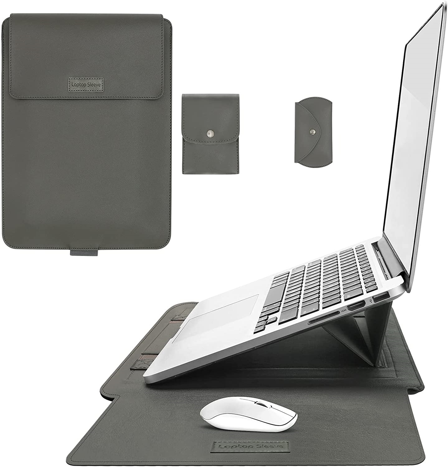 Laptoptas - Laptophoes - Laptop Sleeve - Laptop cover Grijs - Laptophoes 13 inch - Laptoptas 4 piece set - Laptop case met stand en + Etui - Ntech