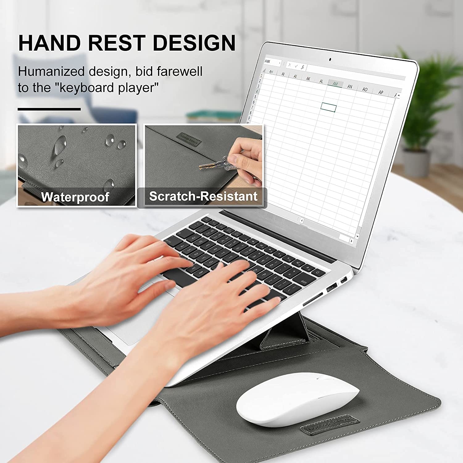 Het geeft een mooie uitstraling maar voelt ook comfortabel aan. De binnenzijde is erg zacht, zodat het de onverwachte stoten en krassen je laptop niet beschadigen. Deze hoesje is ook spatwaterdicht. Wat deze hoesje zo handig maakt is de fijne details zoals de handvat zodat je het makkelijk kunt dragen.