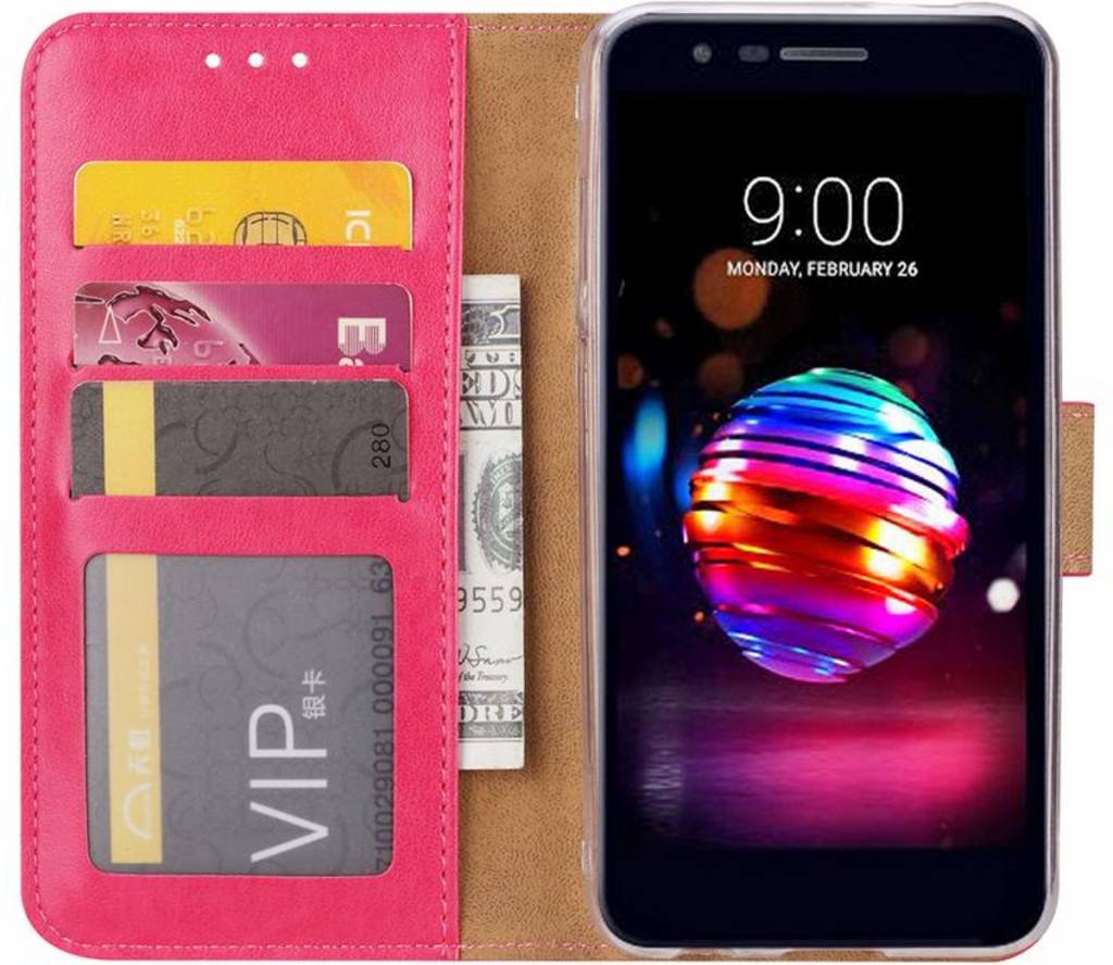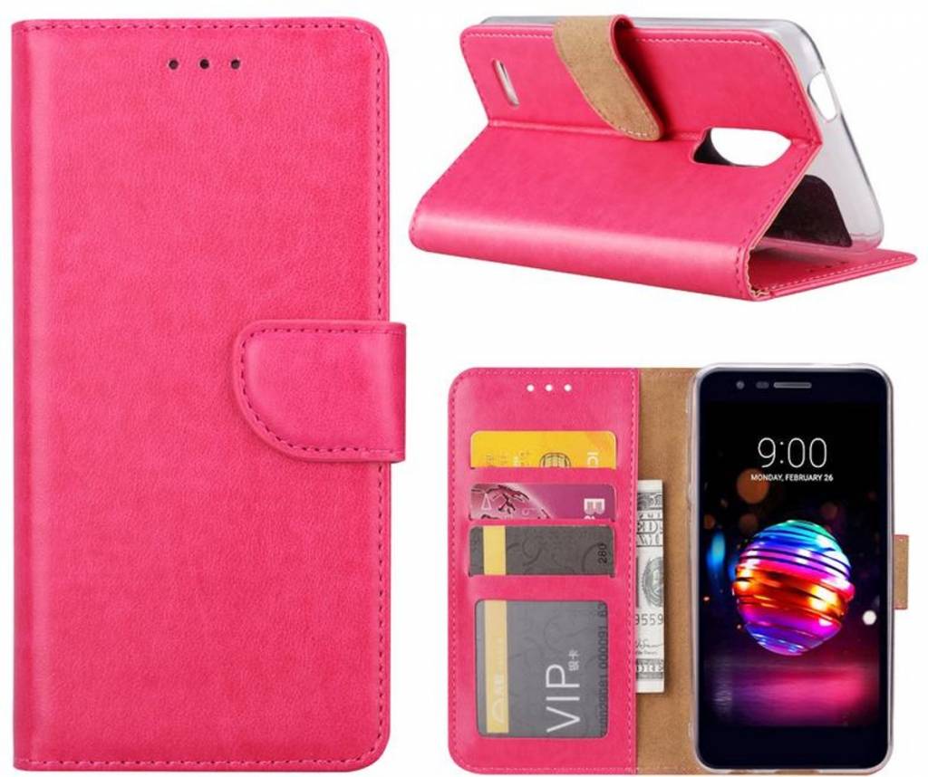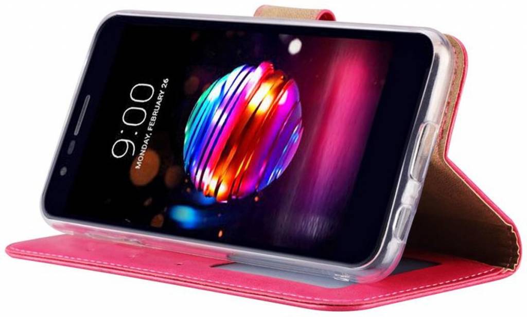 LG K10 (2018) portemonnee Hoesje met opbergvakjes Pink Lees meer
