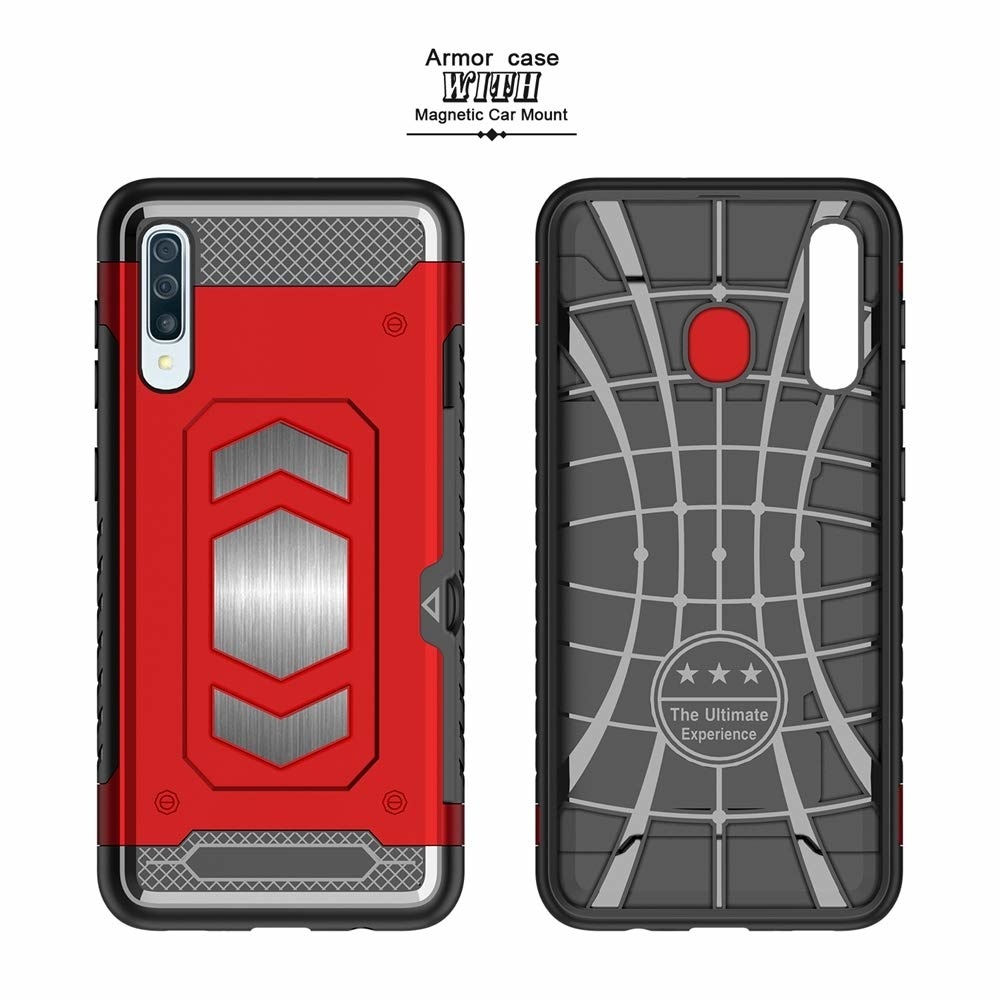 Luxe Armor Hoesje - Samsung Galaxy A50s/A30s TPU Back Cover met card slot en met een metalen plaatje op de achterkant wat je kan gebruiken als een mount op een magnetisch houder bijvoorbeeld in je auto en een ruimte waar je OV kaart, Bankpas of andere soorten pasje in kunt doen. Deze hoesje beschermt jouw toestel tegen ongewenste gebruikersschade. Je smartphone zit in de binnenkant aan een sterke en stevige houder, zo wordt jouw telefoon in dit hoesje tegen stevige stoten en of valpartijen beschermdt
