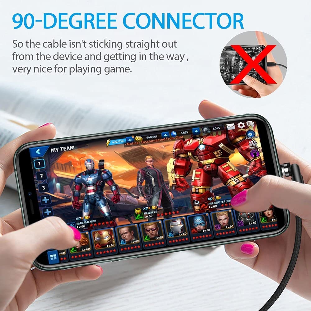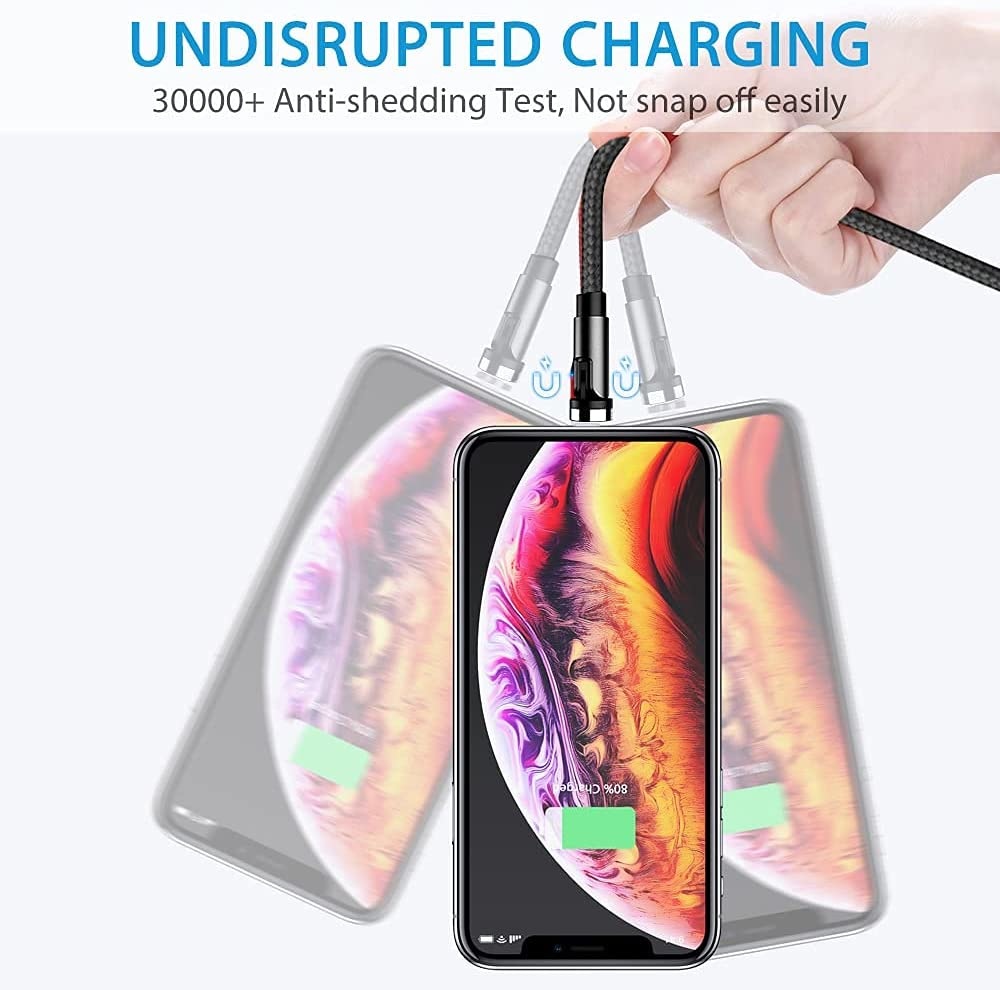180 ° draaibare kop & 360 ° draaibaar - Ontworpen voor gameliefhebbers. De L-vormige en 360 ° draaibare magnetische kop ontwerp maakt het opladen handiger tijdens het spelen van telefoon games, het kan elke telefoon naar boven kant naar beneden te houden zonder spanning op het snoer Hang en No Disconnect.
