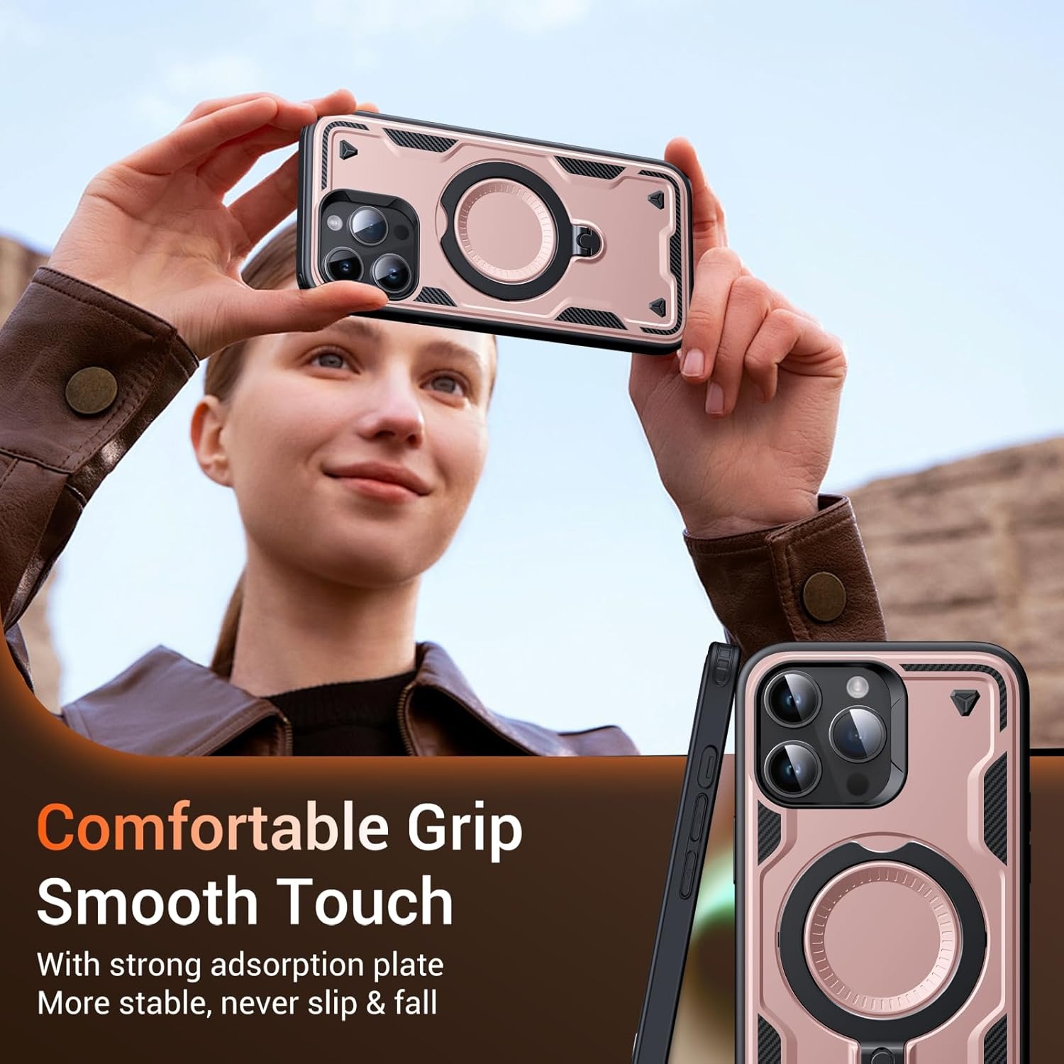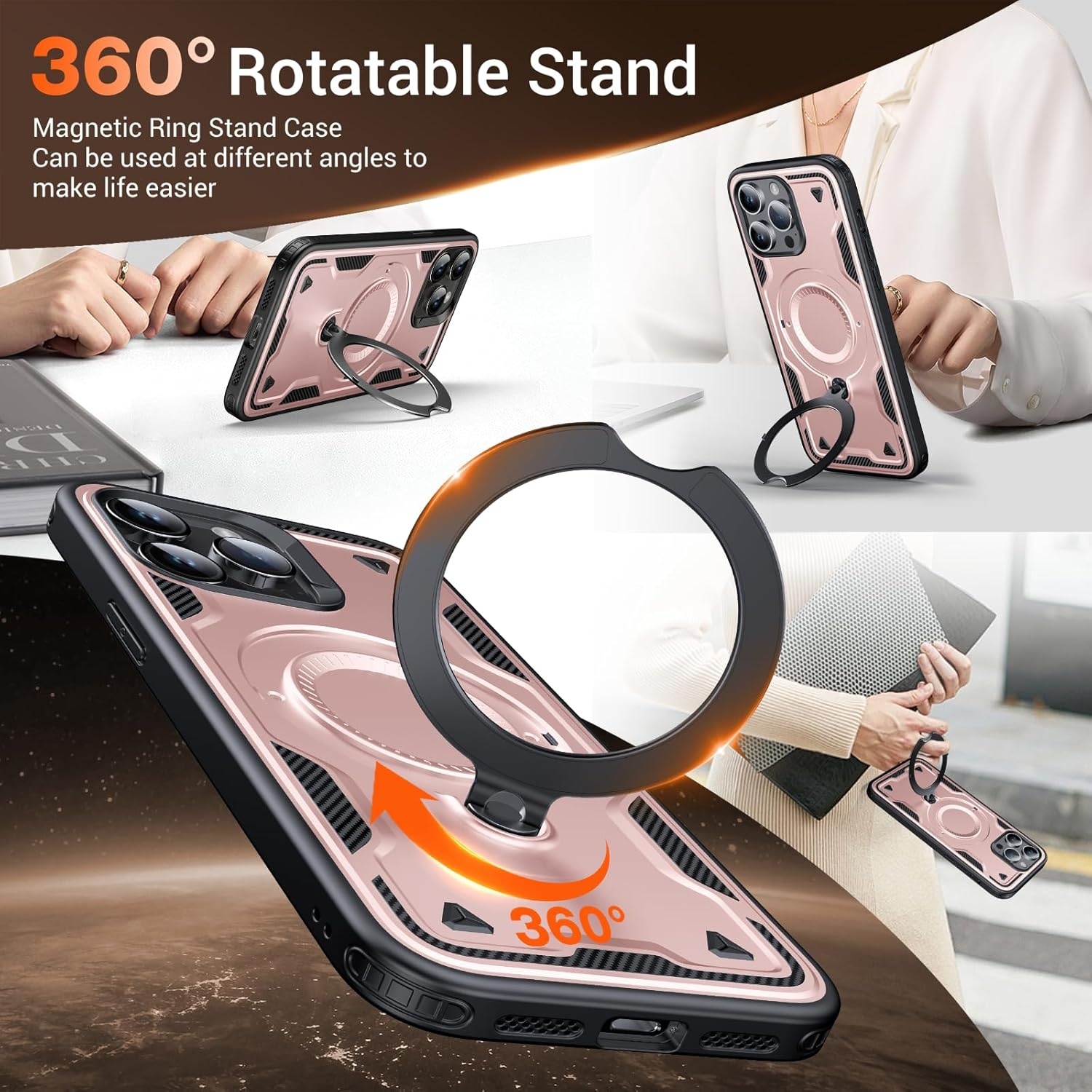 De iPhone 13 Pro Amor Case met roterende kickstand, ringhouder en MagSafe-compatibiliteit is het ultieme accessoire voor iedereen die functionaliteit, bescherming en stijl in één wil.
