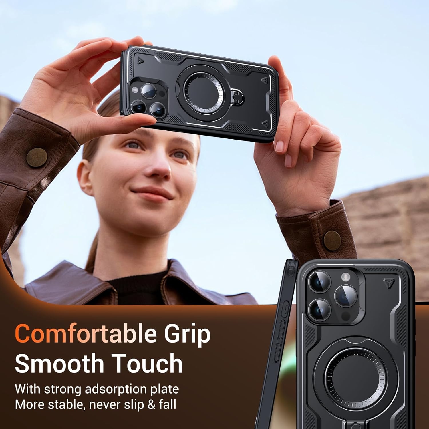 De iPhone 13 Pro Amor Case met roterende kickstand, ringhouder en MagSafe-compatibiliteit is het ultieme accessoire voor iedereen die functionaliteit, bescherming en stijl in één wil.