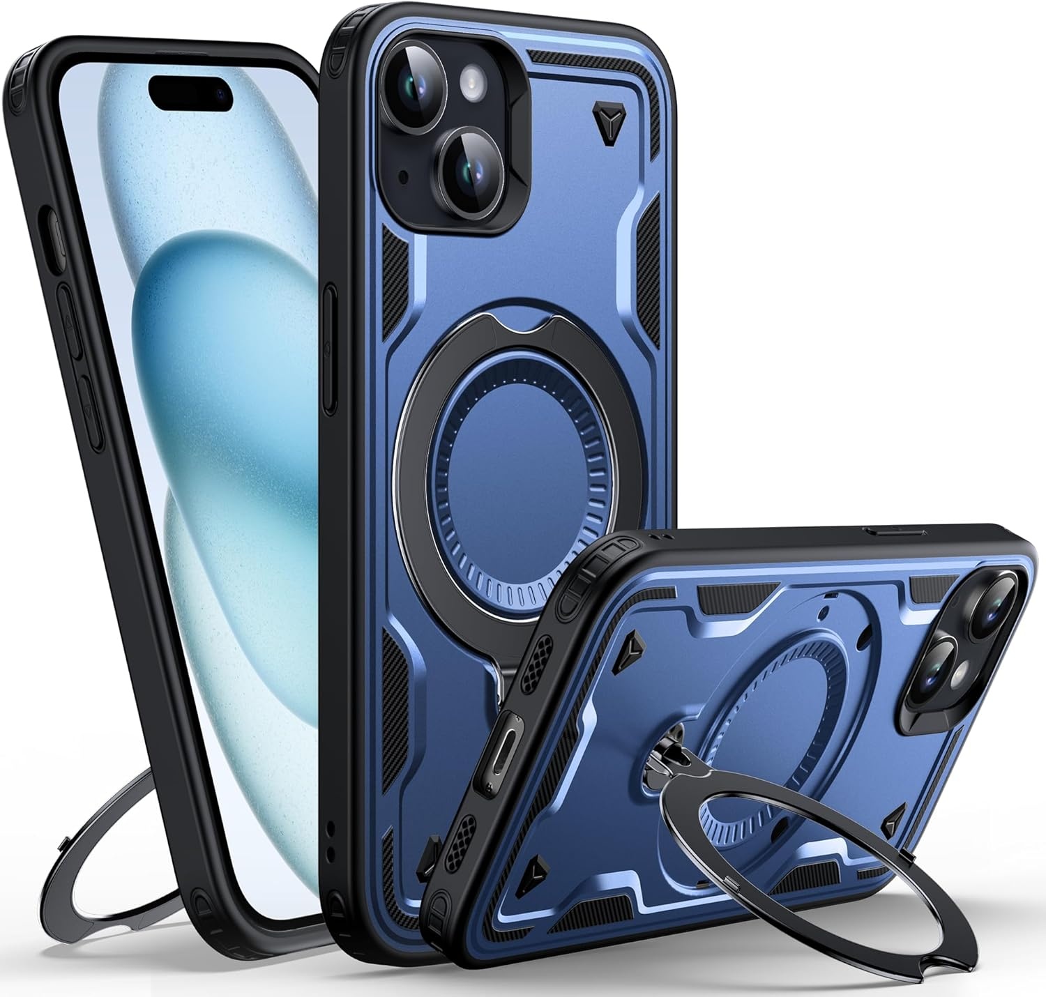 De iPhone 15 Amor Case met roterende kickstand, ringhouder en MagSafe-compatibiliteit is het ultieme accessoire voor iedereen die functionaliteit, bescherming en stijl in één wil.