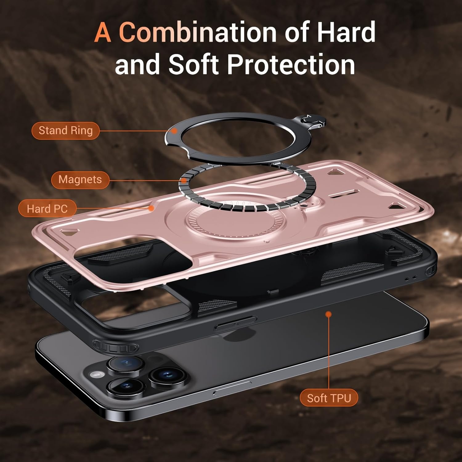 De iPhone 15 Amor Case met roterende kickstand, ringhouder en MagSafe-compatibiliteit is het ultieme accessoire voor iedereen die functionaliteit, bescherming en stijl in één wil.
