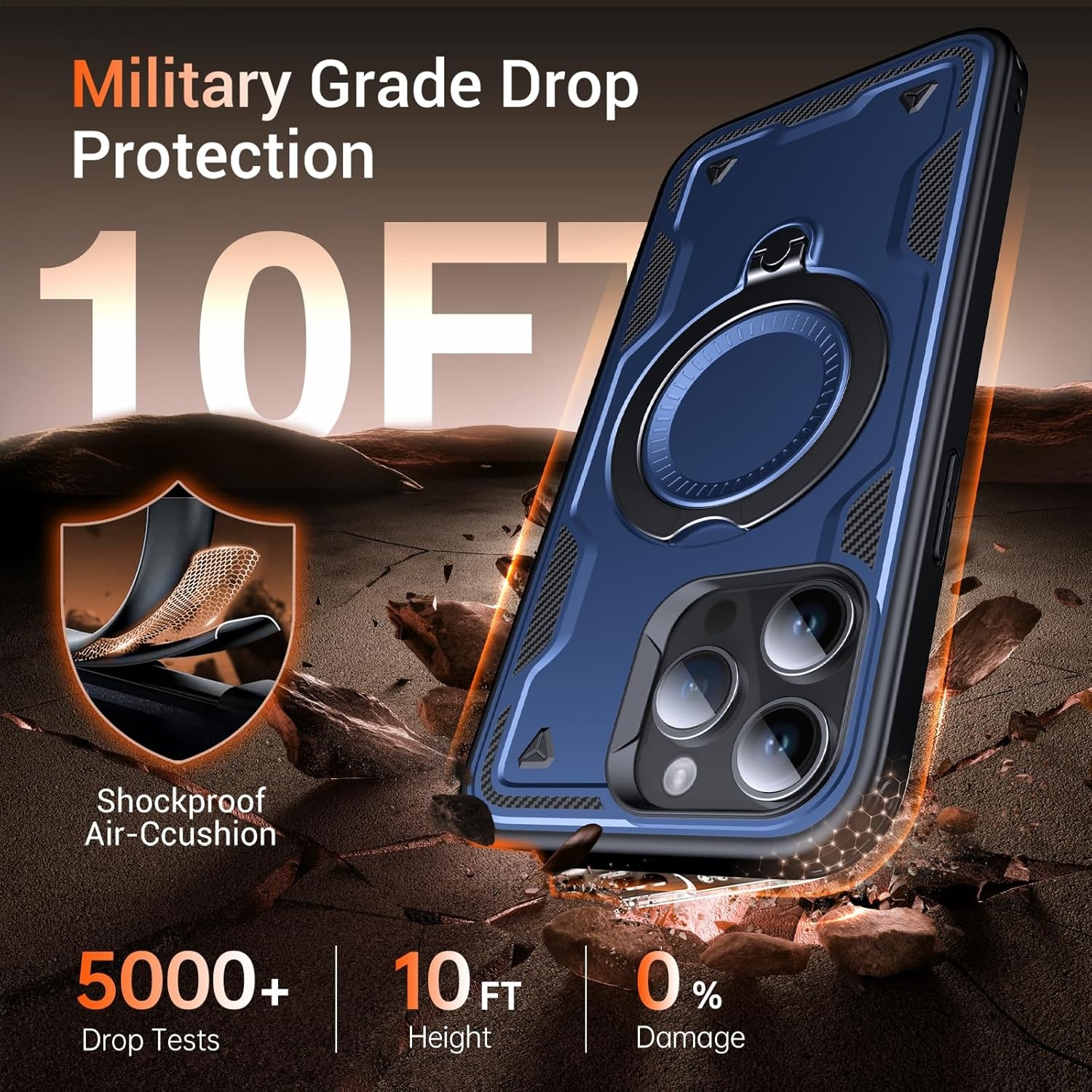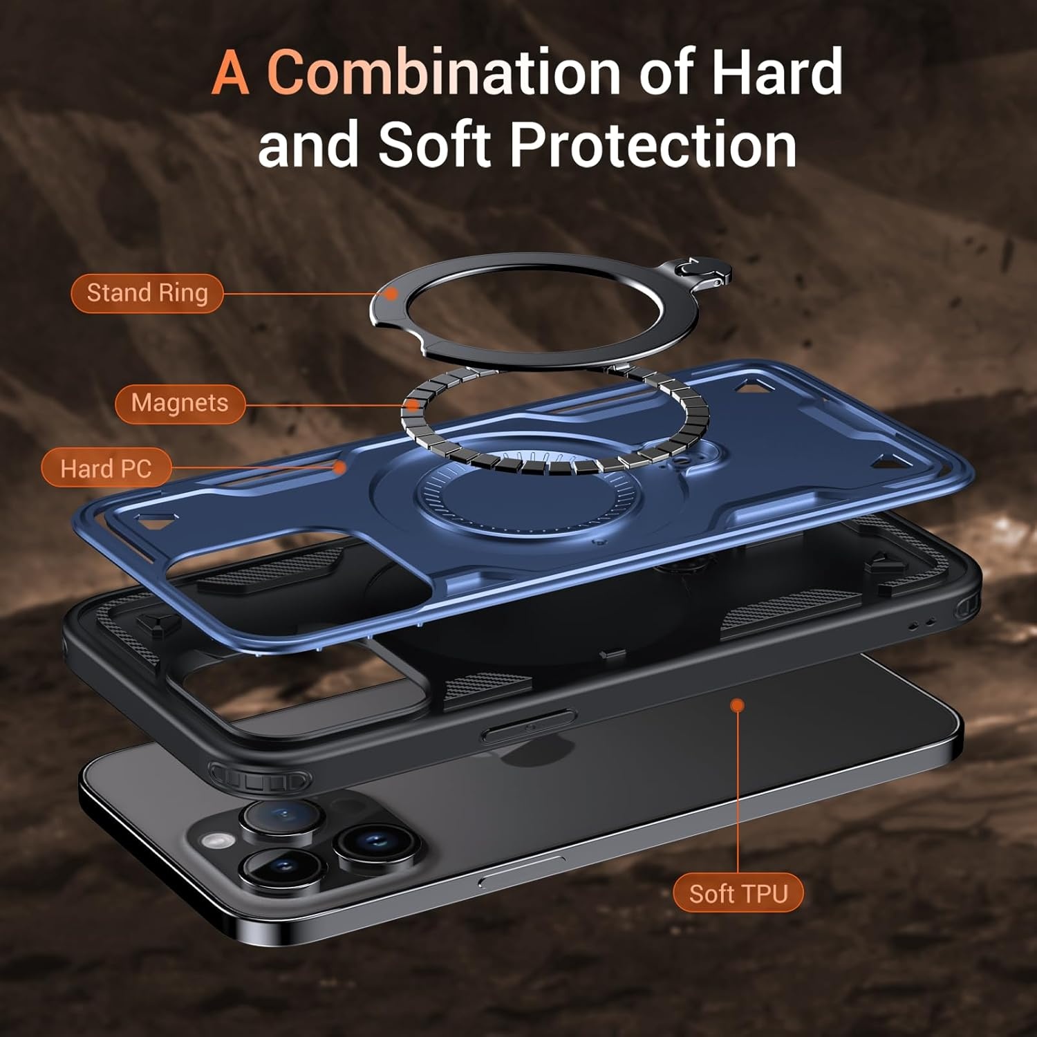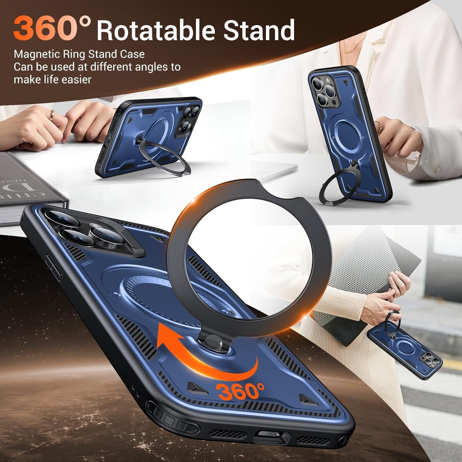 Magsafe Hoesje Geschikt voor iPhone 15 Plus / 14 Plus Hoesje Navy - Armor Hoesje met Met Draaibare Ring Houder