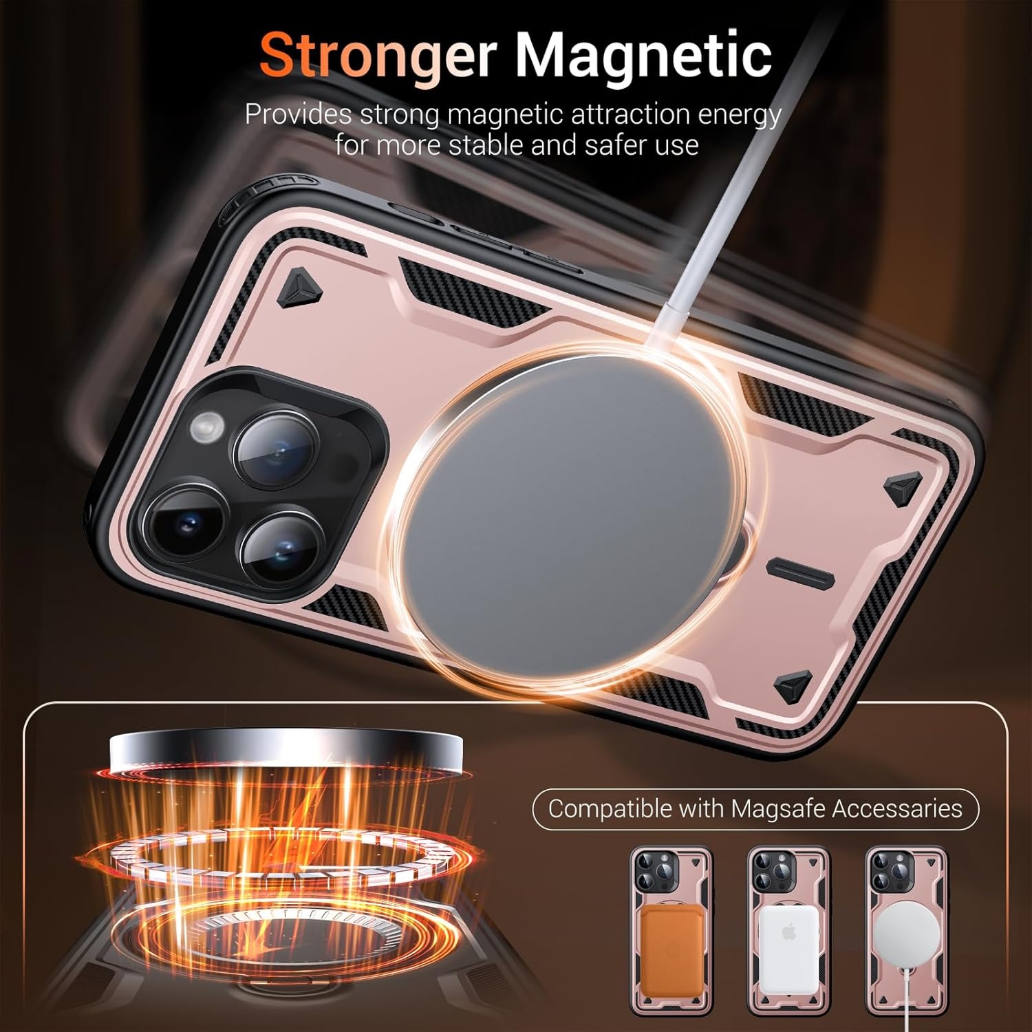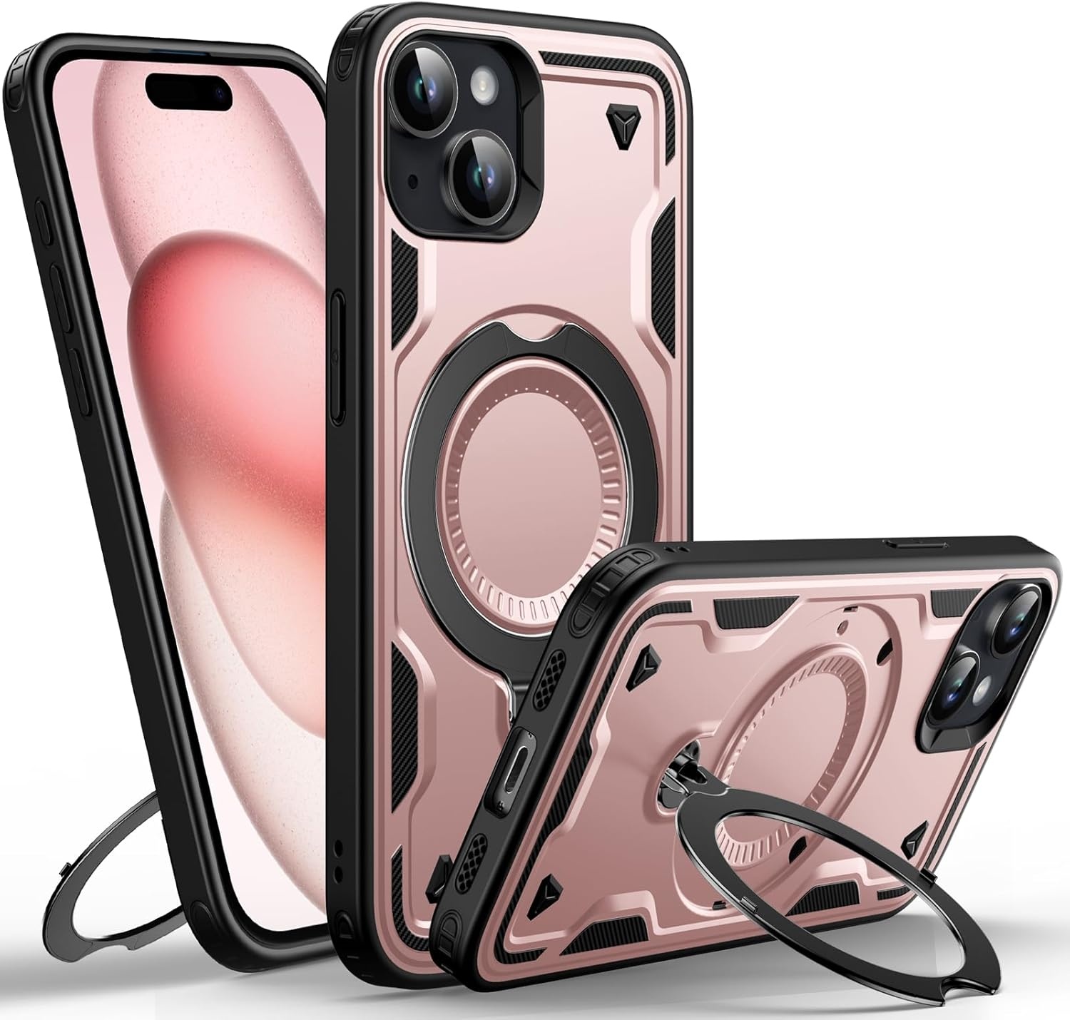 De iPhone 15 Plus / iPhone 14 Plus Amor Case met roterende kickstand, ringhouder en MagSafe-compatibiliteit is het ultieme accessoire voor iedereen die functionaliteit, bescherming en stijl in één wil.