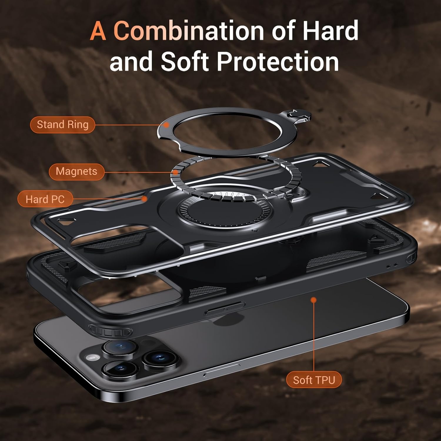 De iPhone 15 Plus / iPhone 14 Plus Amor Case met roterende kickstand, ringhouder en MagSafe-compatibiliteit is het ultieme accessoire voor iedereen die functionaliteit, bescherming en stijl in één wil.