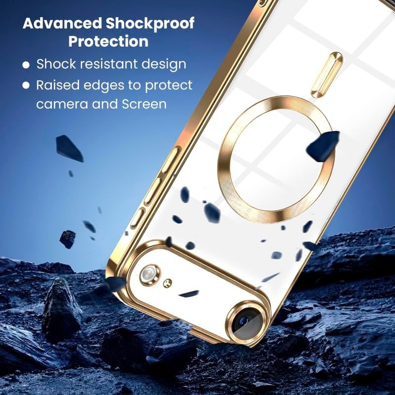 Magsafe Hoesje Geschikt voor iPhone Air hoesje Transparant / Goud - Lens beschermer – backcover