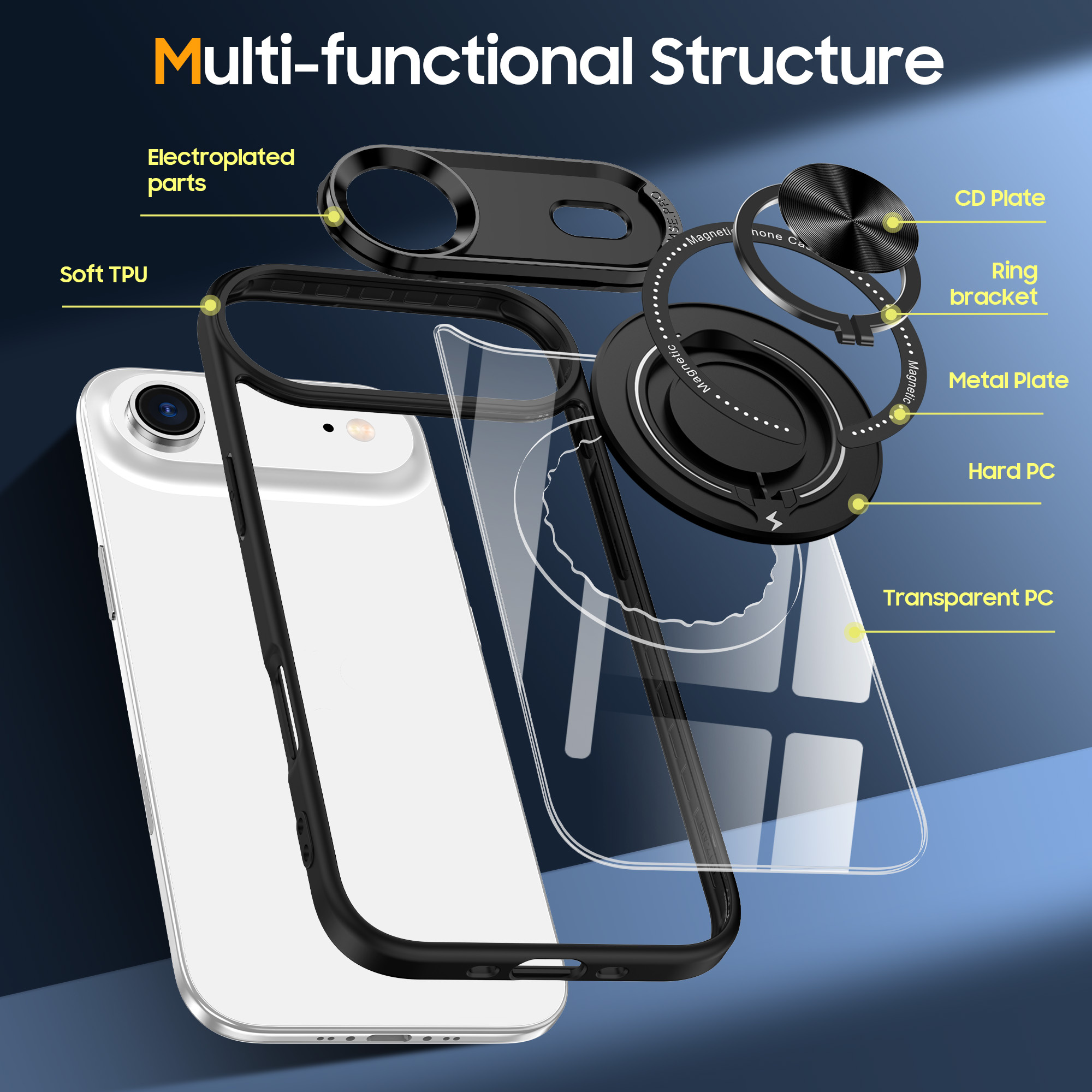 • De ingebouwde ringhouder biedt een stevige grip, waardoor je je telefoon gemakkelijker kunt vasthouden en voorkomt dat deze uit je handen glijdt.