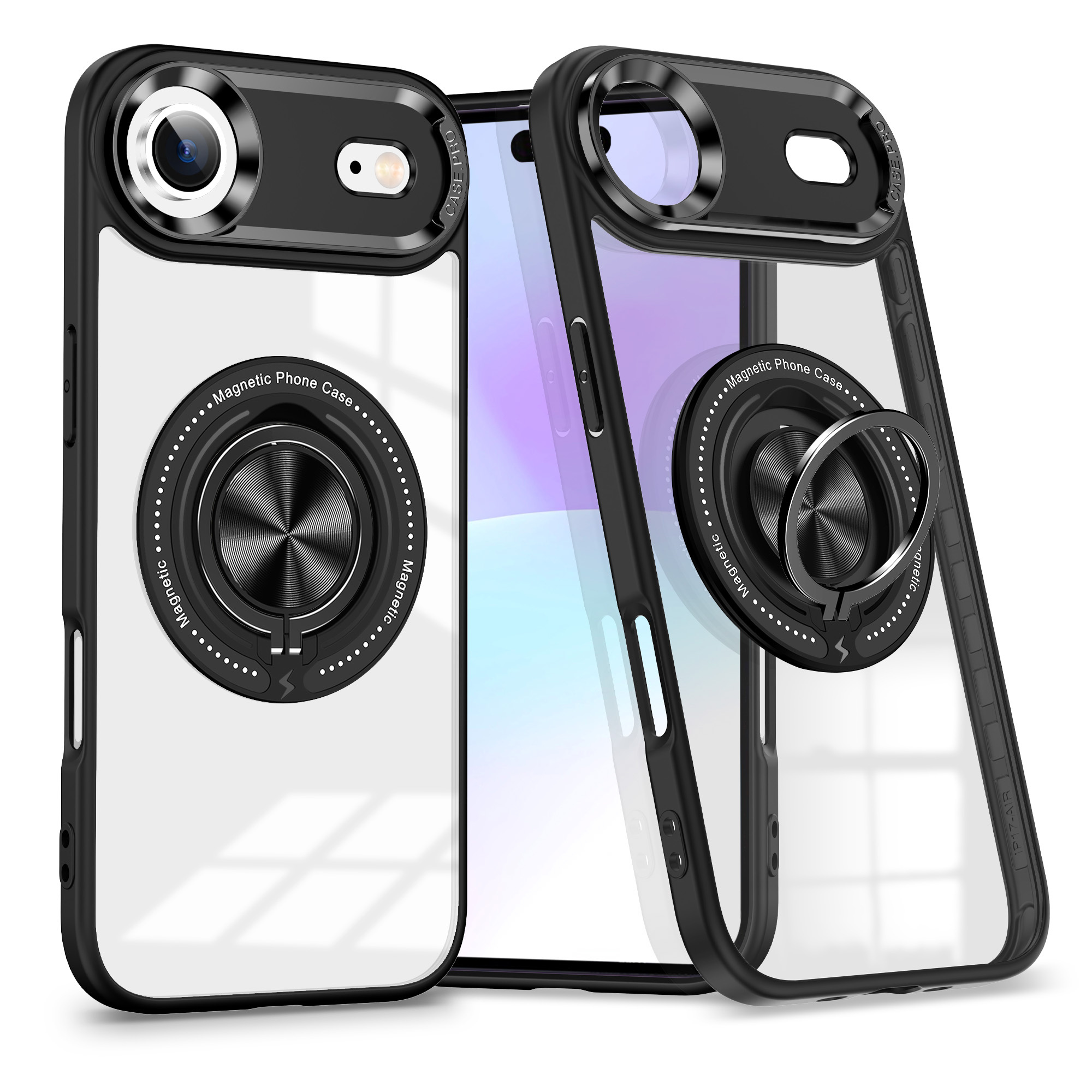 Magsafe Hoesje Geschikt voor iPhone Air hoesje Zwart Transparant - Met kickstand Draaibare Ring Houder - Phonecompleet.nl