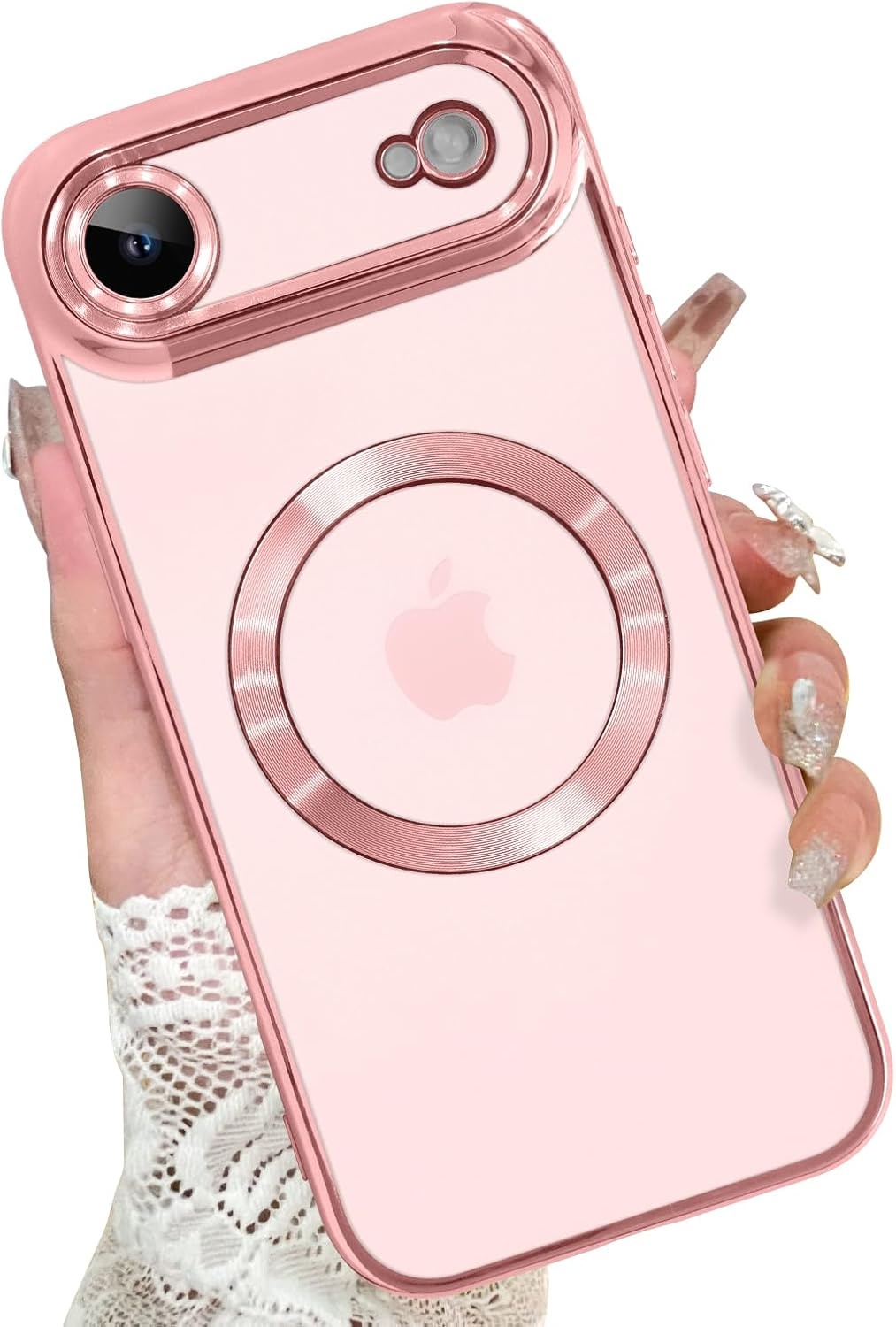 Magsafe Hoesje Geschikt voor iPhone Air hoesje Transparant / Rose Goud - Lens beschermer – backcover