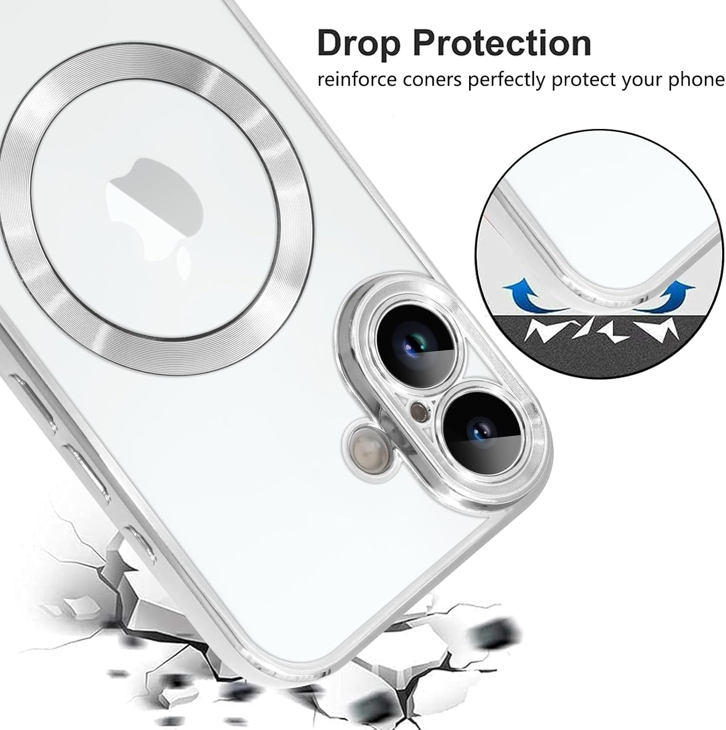 Magsafe Hoesje Geschikt voor iPhone 17 hoesje Transparant / Zliver - Lens beschermer – backcover