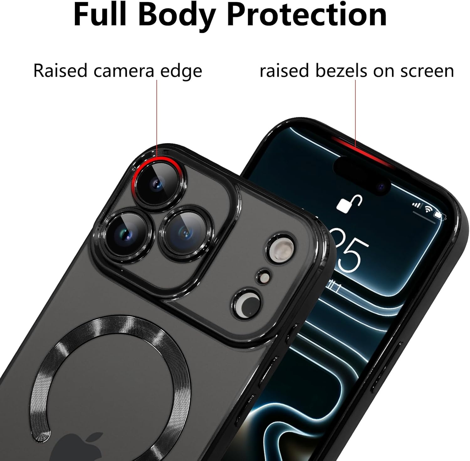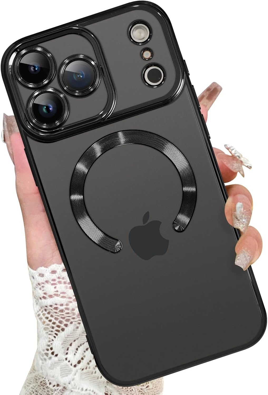 Magsafe Hoesje Geschikt voor iPhone 17 Pro hoesje Transparant / Zwart - Lens beschermer – backcover