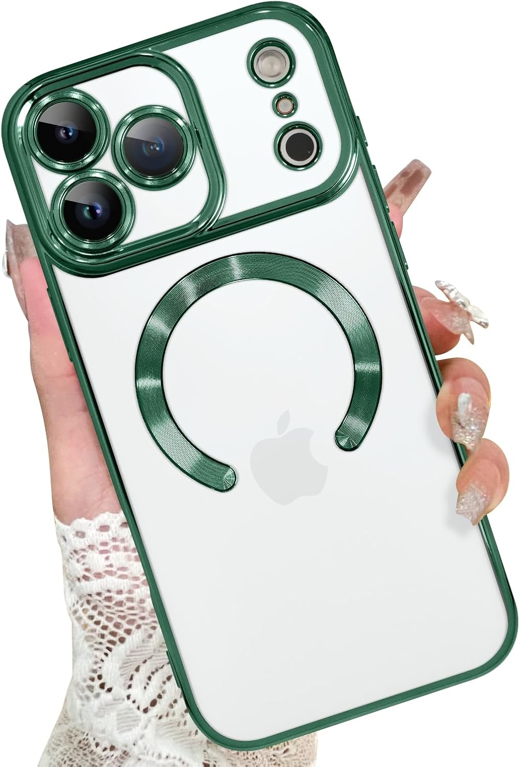 Magsafe Hoesje Geschikt voor iPhone 17 Pro Max hoesje Transparant / Groen - Lens beschermer – backcover