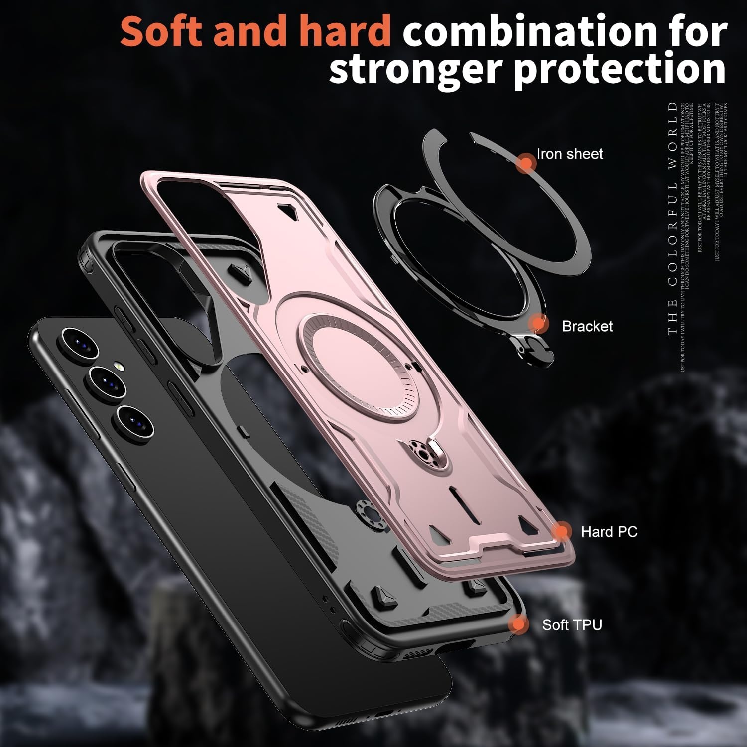 Magsafe Hoesje Geschikt voor Samsung Galaxy S23 Hoesje Rose Goud - Armor Hoesje met Met Draaibare Ring Houder